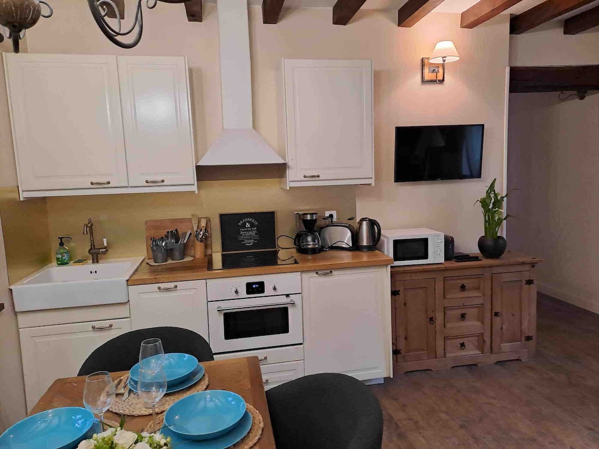 Hyper center , ten uroczy dom jest idealnie położony przed jeziorem, u stóp majestatycznego zamku i jego restauracji. Składa się z w pełni wyposażonej kuchni i salonu z 2-osobową sofą. Na piętrze znajduje się piękna sypialnia z dużym łóżkiem, garderobą i łazienką. Kawa, herbata i przyprawy są dostępne. Duży i cichy taras. U bram lasu stanowego Compiègne, przyjedź i naładuj baterie i ciesz się wieloma zajęciami.