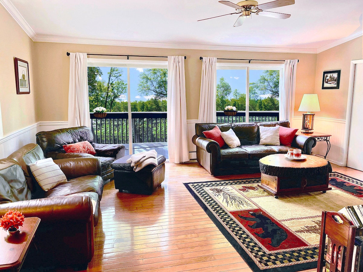 Od momentu przyjazdu poczujesz urok górskiego wypoczynku – zaledwie kilka minut od serca miasta! Zrelaksuj się na rozległej werandzie i podziwiaj spokojne widoki na las. W pełni wyposażona kuchnia sprawia, że gotowanie jest dziecinnie proste, a duże łóżka w wybranych sypialniach dodają luksusu. Przytulny salon wyposażony jest w 65-calowy telewizor z możliwością przesyłania strumieniowego. Niezależnie od tego, czy szukasz spokojnego wypoczynku, czy bazy do zwiedzania okolicy, ten dom oferuje to, co najlepsze z obu światów.
