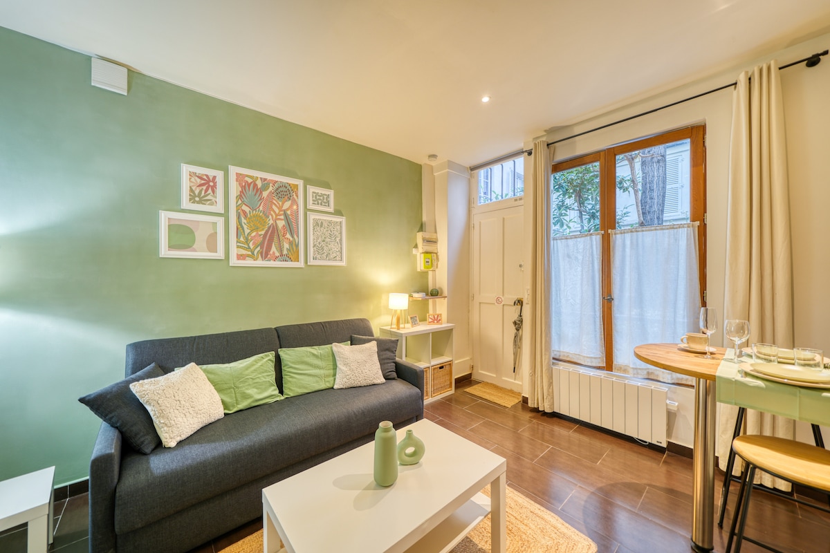 W sercu Montparnasse, rodzinny i komfortowy apartament o powierzchni 30 metrów, całkowicie odnowiony lipcu 2020, spokojne na dziedzińcu, w animowanej okolicy w pobliżu rue de Rennes et Saint germain des près. Apartament położony na parterze (łatwy dostęp) składa się z w pełni wyposażonej kuchni (ze zmywarką), salonu z wygodną i wysokiej jakości nową rozkładaną sofą, jadalni, oddzielnego pokoju z wysokiej jakości pościelą (150 cm), łazienki z pralką i suszarką, wielu szaf.
