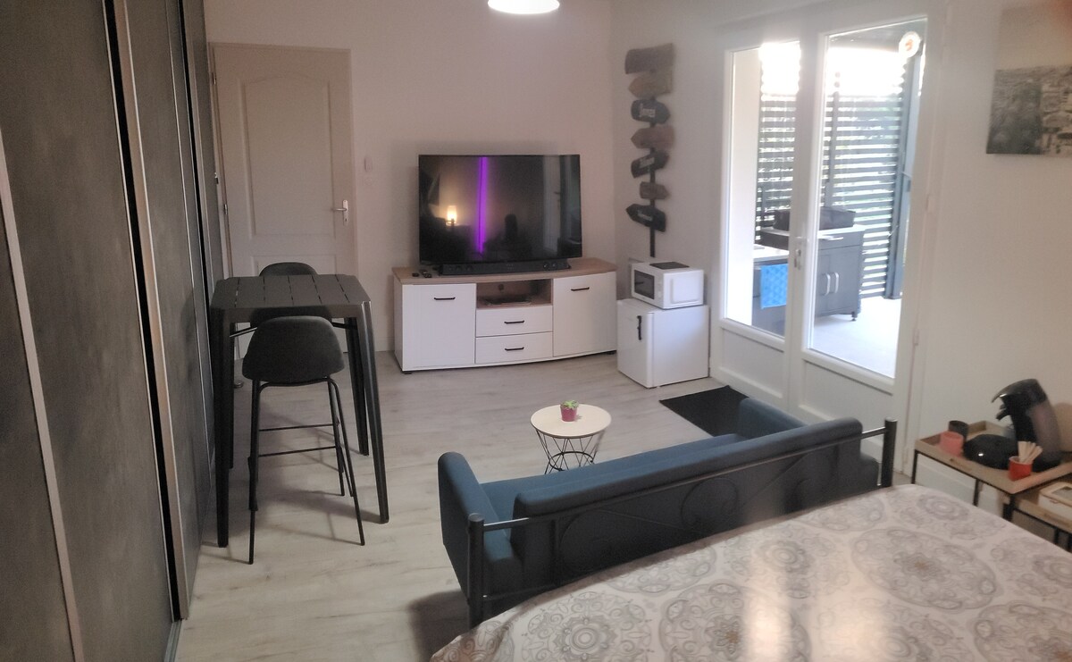 Ten mały apartament znajduje się na parterze dużego domu, na spokojnej ulicy między Place Carnot i parkiem Thuyas, 20 minut spacerem od centrum miasta. Składa się z małego salonu z wyposażoną kuchnią, łazienki z włoskim prysznicem oraz sypialni z widokiem na prywatny, zacieniony dziedziniec. (Akceptuję krótkie pobyty, ale ze względu na odpowiedzialność ekologiczną zapewniam pościel tylko na życzenie. Dopłata 12 €)