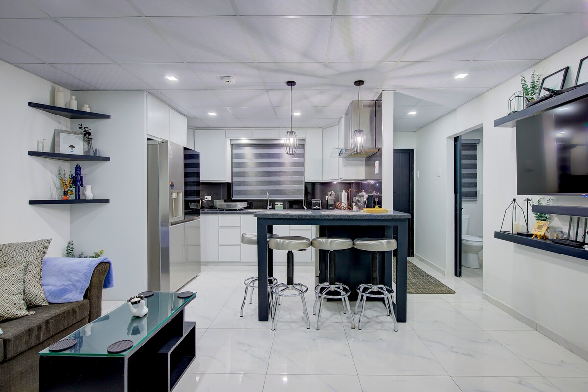 Luksusowe mieszkanie w samym centrum. Zaledwie 4 minuty od lotniska, centrum handlowego Trincity i innych centrów handlowych; i tylko 20 minut od miasta Port of Spain. Idealne na podróże służbowe i wypoczynek dla par/przyjaciół Zrelaksuj się w naszej luksusowej sypialni z wanną zaprojektowaną przez Spa lub wypij ulubionego drinka podczas czytania książki w naszej eleganckiej przestrzeni mieszkalnej. Zawiera również 1 łóżko sypialniane, Wi-Fi, wysokiej klasy urządzenia, kamery bezpieczeństwa. Zakaz palenia.