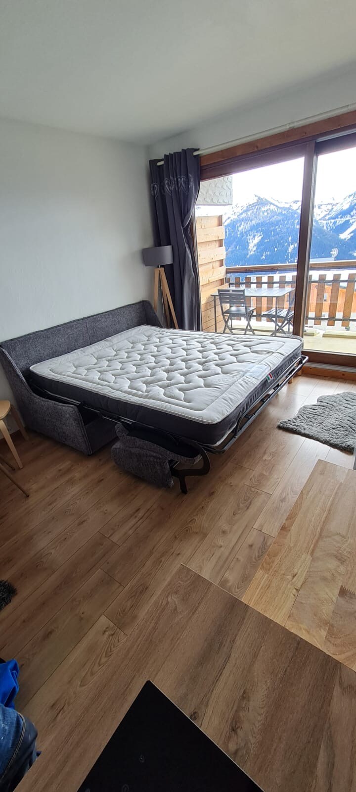 Studio 20 m2 na parterze. Całkowicie odnowiony. 2 łóżka piętrowe 1 rozkładana sofa 160. Oszczędność miejsca, aby móc poruszać się po studio, gdy jest ono złożone. Wyposażona kuchnia z dużym tradycyjnym piekarnikiem. Łazienka z prysznicem. Widok na las. 2 minuty spacerem od stoków. Szafka na narty wliczona w cenę apartamentu. 5 minut od centrum miasta (supermarket, sklep z serami itp.), dużo miejsca do przechowywania. Apartament położony w rezydencji Bouquetins (powiadomienie waze)