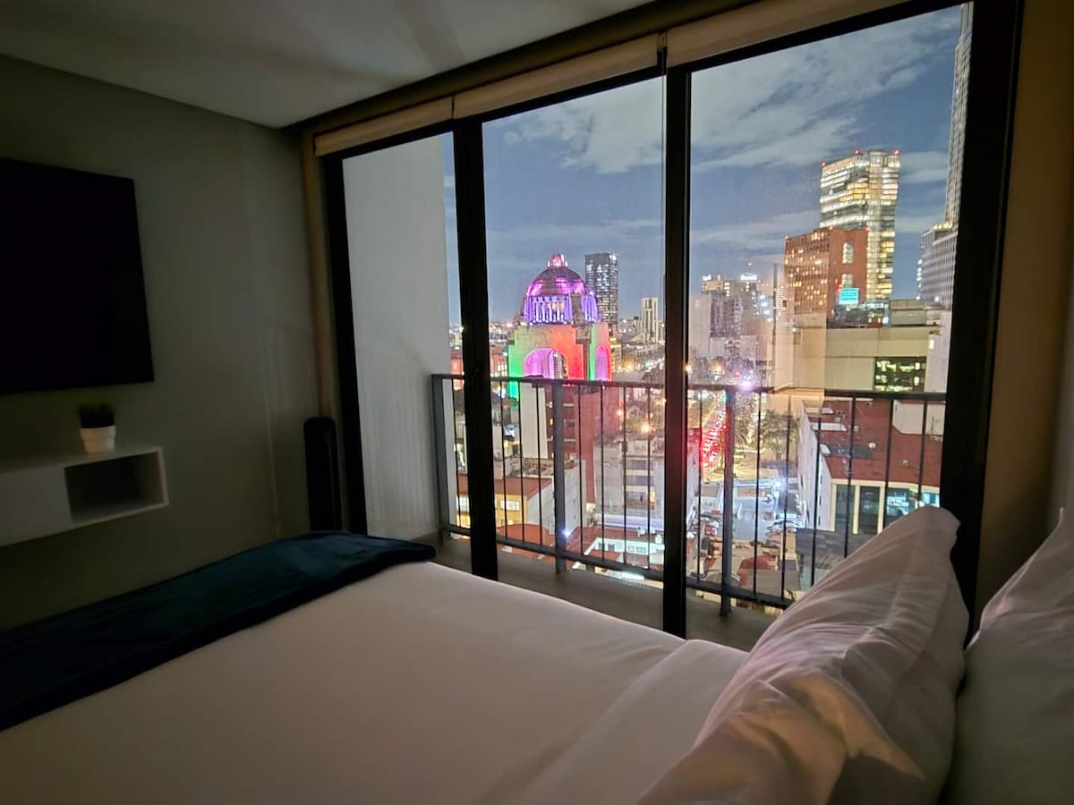 Ciesz się tym nowym apartamentem w wieżowcu z niesamowitymi udogodnieniami na dachu, takimi jak basen, jacuzzi, sauna, łaźnia parowa, siłownia, sale konferencyjne, stół bilardowy i inne. Apartament jest dobrze położony w dzielnicy Art-Deco, Tabacalera, i tylko 2 przecznice od Reforma Avenue. Przestrzeń oferuje panoramiczny widok na Pomnik Rewolucji, a ponieważ ma więcej niż podstawowe udogodnienia, poczujesz się jak w domu.
