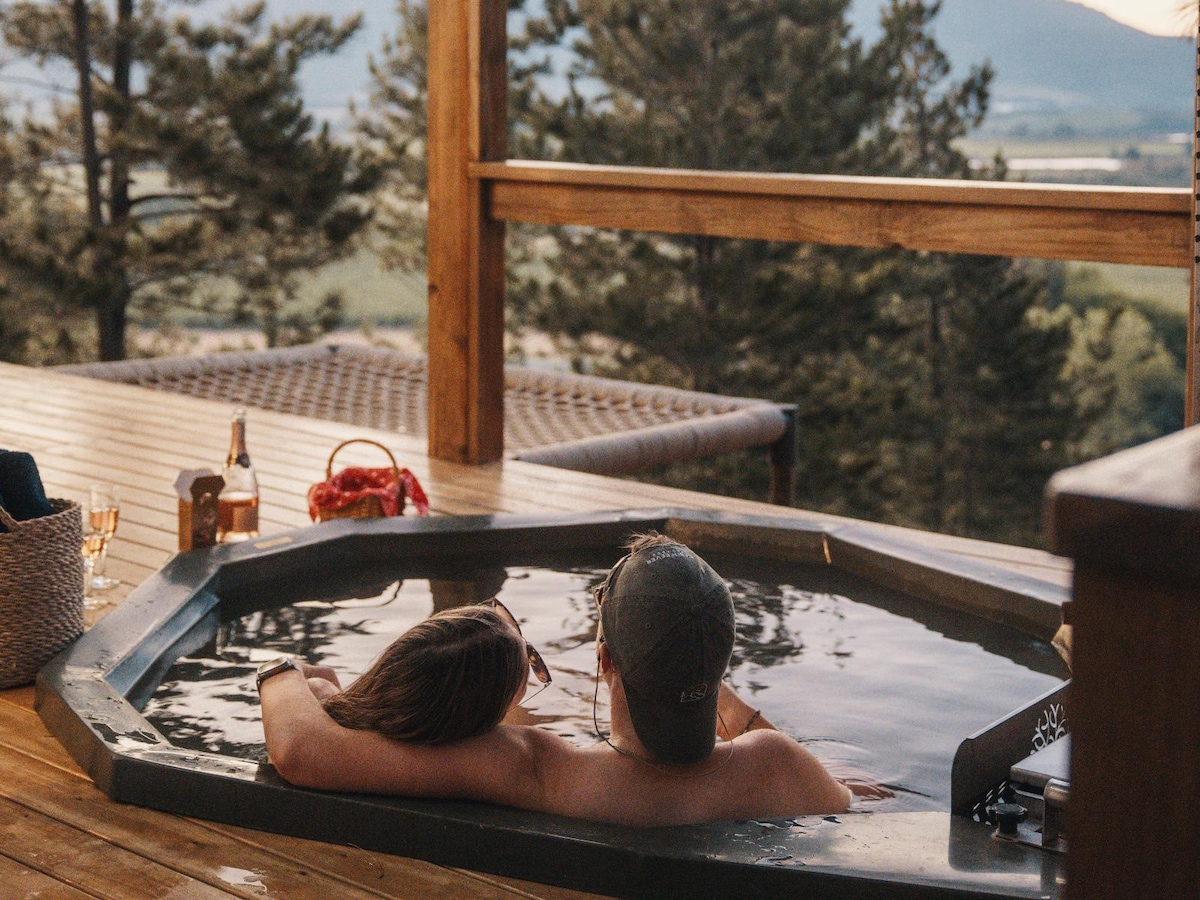 Enjoy the lovely setting of this romantic Getaway Cabin nestled in the Hawekwa mountains, situated at La Vita Farm just outside Wellington. Relax in a wood-fired hot tub while enjoying the captivating views during the day and stunning sunsets in the evening. Take a morning stroll along the vineyards or walk over to La Vita bistro for breakfast and delicious coffee.