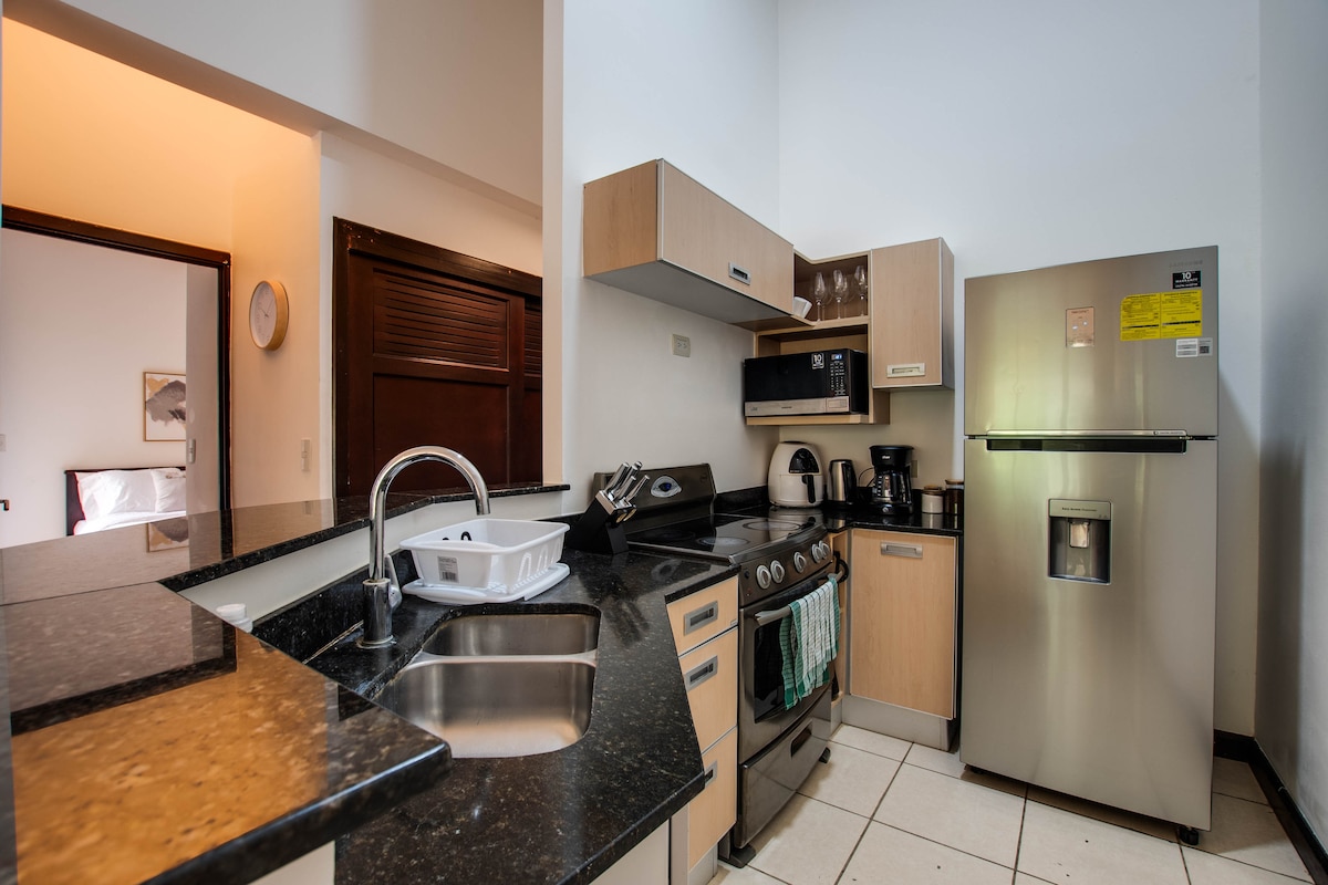 To apartament jest idealny dla jednej osoby, par lub maksymalnie 4 osób, na jedną noc lub kilka dni szukających wygody, bezpieczeństwa i idealnej lokalizacji, ponieważ znajduje się w samym centrum Santa Ana, kilka metrów od zielonych targów Santa Ana, Santa Ana Town Center Gastronomic Market, Automercado i wielu innych sklepów. Lotnisko: 6 mil Droga 27 (Guanacaste, Jaco, Manuel Antonio): % {smart2 mili Clinica Biblica Hospital - 1,2 mili Multiplaza: 4 mile