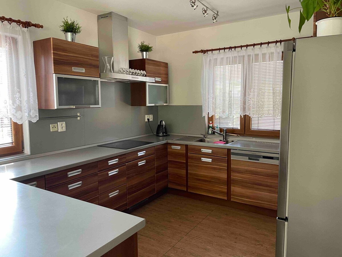 Nie ma znaczenia, czy przyjedziecie tylko we dwoje na romantyczny weekend, czy też wykorzystacie całą pojemność domu. Cały dom będzie zawsze tylko dla Ciebie. Co sprawia, że nasze miejsce jest wyjątkowe? Wszędzie jest blisko, a jednocześnie jesteś w otoczeniu gór i przyrody. Możesz dojść do bardzo dobrej restauracji lub sklepu, ścieżka rowerowa zaczyna się 100 metrów od domu, a wokół są piękne góry z ich królową, Łysą Górą. Dom jest wyposażony we wszystko, czego możesz potrzebować. Przytulne pokoje, gabinet, siłownia, taras z jacuzzi, ogród, kino domowe...