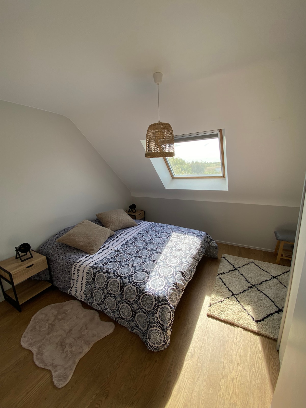 Nowy apartament zbudowany w 2021 roku, sąsiadujący z naszym głównym miejscem zamieszkania, posiada niezależne wejście i parking. Dostęp do apartamentu przez niezależne schody zewnętrzne. Trzypokojowe mieszkanie z salonem (rozkładana sofa dwuosobowa) / otwarta i wyposażona kuchnia, sypialnia z łóżkiem (160x200) i łazienka. Znajduje się w spokojnej okolicy, w pobliżu szlaków turystycznych i lasów, 3 km od plaż i niedaleko dużych miast (Auray, Vannes, Lorient ...).
