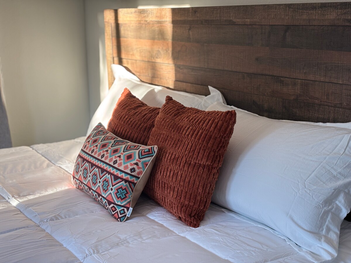 Villa Saguaro is a private, modern one-bedroom guesthouse ideal for traveling professionals, contractors, and work crews. Unwind after work in a comfortable king bed and enjoy a quiet space designed for rest and productivity. Includes fast Wi-Fi, a dedicated workspace, and a kitchenette for easy meals. Private entrance. Attached to the main house but fully separate, offering a peaceful and secure stay for short or extended work trips.