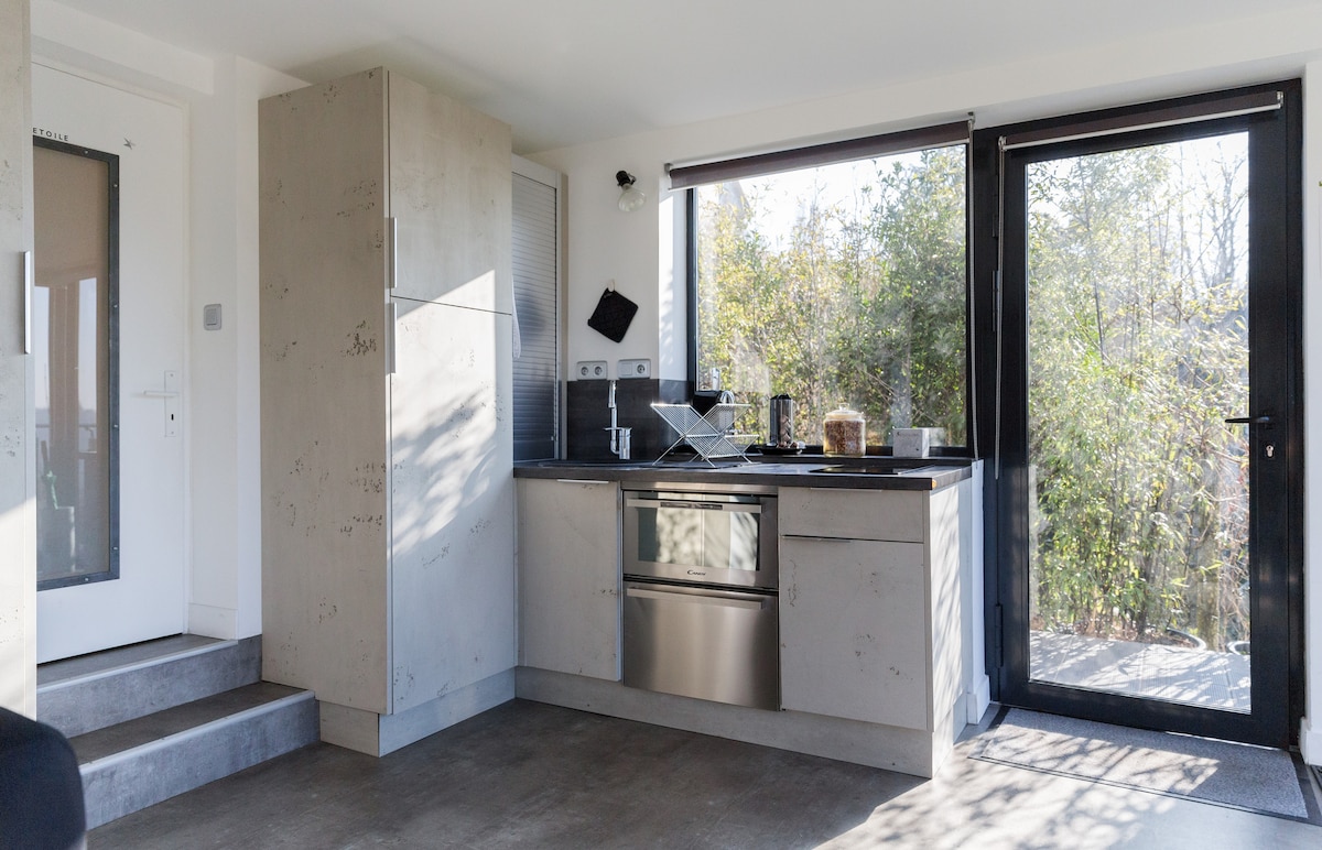 La Lanterne to jasny i pełen światła domek typu loft (50 m2) położony w Normandii, na pięknym terenie dużego domu nad brzegiem Sekwany w Tournedos-sur-Seine (spokojna wioska cztery km od Le Vaudreuil/Val-de-Reuil). Dom został dobrze umeblowany i jest w pełni wyposażony. Dwa duże pokoje z otwartą kuchnią, sypialnia z podwójnym łóżkiem typu king size, sofa, biurko. Prywatna łazienka z kabiną prysznicową. Luksusowy wystrój. Spokojne i magiczne otoczenie blisko natury.