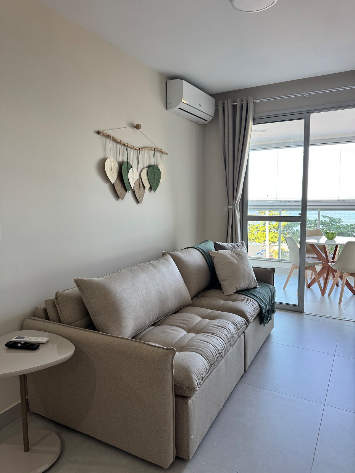 Loft foot in the sand at the best location of Praia da Costa (VV's most upscale neighborhood). Spektakularny widok na morze! Full apto (all automated) and all-new. 1 duży apartament z biurkiem i monitorem do pracy z widokiem na morze! Salon, kuchnia i zintegrowany balkon, z wyspiarskimi sofami, super przytulną architekturą, wyposażony jest w telewizor Smart TV o długości 50cali. Jakbyś był na statku, apartament został zaprojektowany tak, aby można było zobaczyć morze ze wszystkich stron. Wyjątkowa atrakcja! Zrelaksuj się i ciesz się tym rajem!