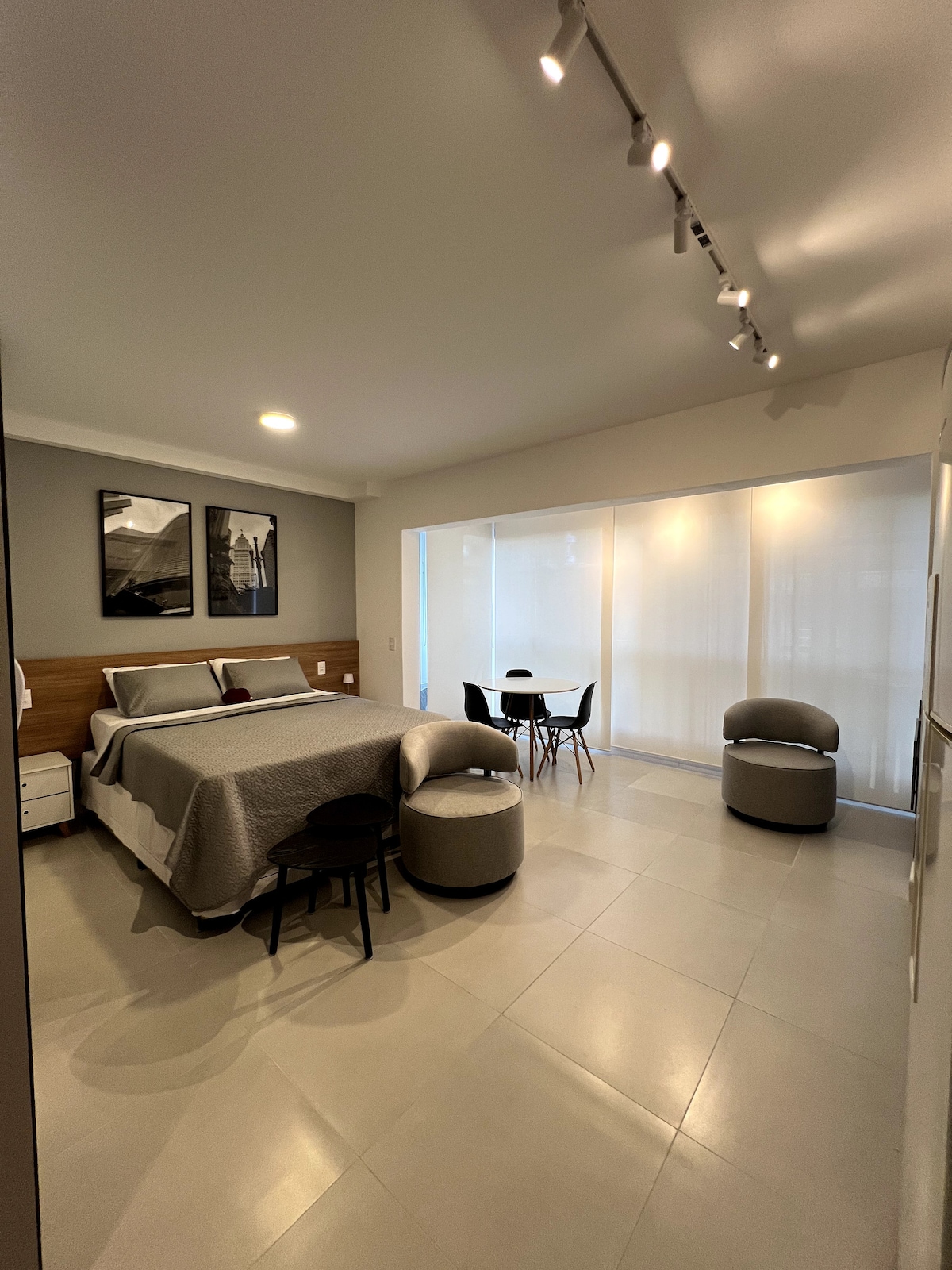Studio znajduje się w dwuwieżowym kondominium z pełną infrastrukturą bezpieczeństwa i rekreacji. W części wspólnej gość ma dostęp do basenu na dachu, krytego basenu z torem do pływania i siłowni. Położony przy Rua Henri Dunant, tej samej ulicy co Konsulat Amerykański (80 m) i zaledwie 5 minut spacerem od EZ Tower, Rochaverá i Parque da Cidade Corporate. 25 metrów od Av Dr. Chucri Zaidan, a zatem blisko centrów handlowych Morumbi, Market Place i Parque da Cidade.