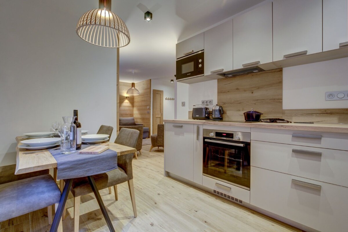 Uroczy apartament dla 5 osób, z dostępem do stoków narciarskich, odnowiony.