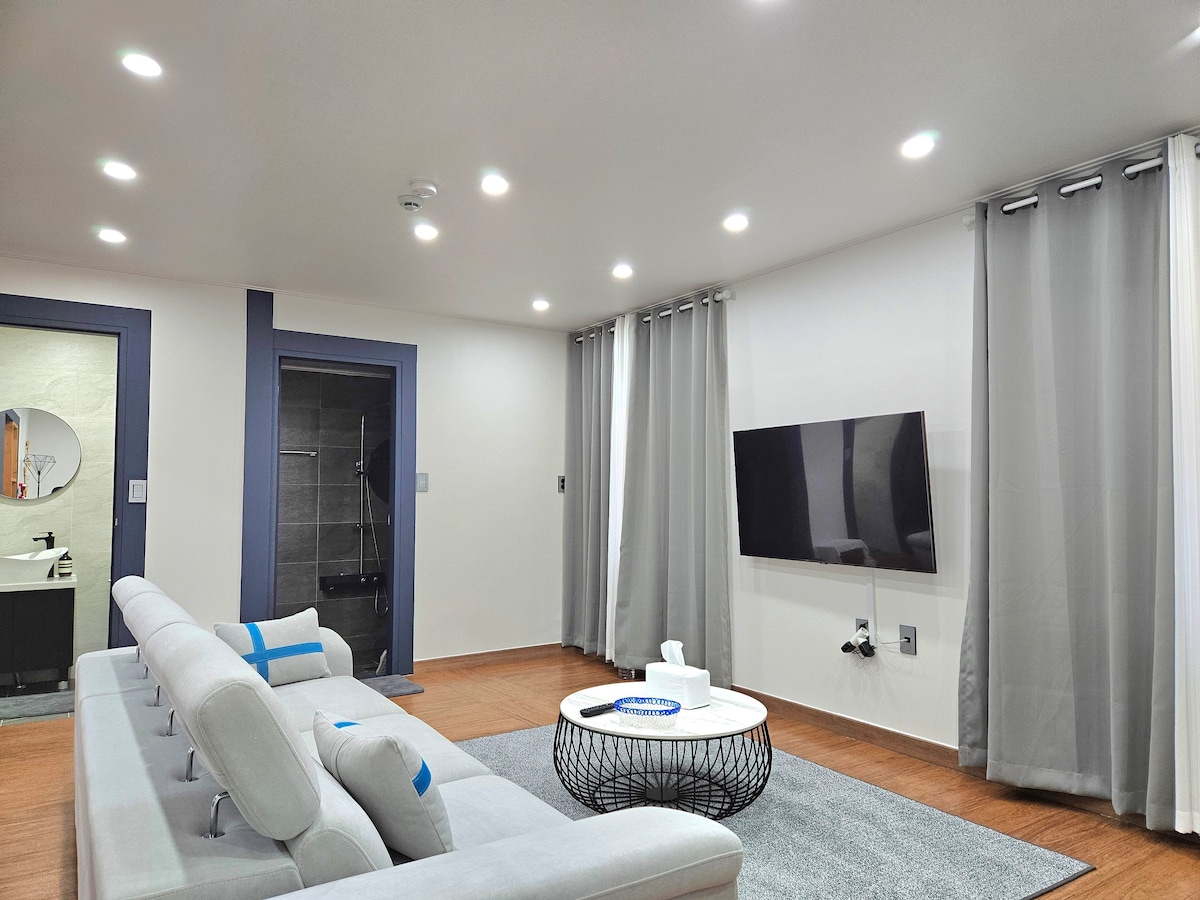 ※영유아를 포함하여 최대인원을 초과하는 예약은 수락되지 않습니다. 숙박 정원을 확인해주시기 바랍니다. ※ 에어비앤비 메세지 응대 가능 시간 - 오전 10시 ~ 오후 10시 -------------------------------------- 인공 잿빛 건물들 틈에서 빛을 잃어가는 꿈. 일상에서 벗어나 이국적인 산방산과 고요한 사계 바다를 통해 과거를 정리하고, 내일을 꿈꾸는 기회를 얻는 공간이고 싶습니다. 네추럴한 디자인과 벽 2면을 통유리로 시공하여 시원한 개방감을 주었으며, 커텐 및 블 라 인 더 대신 특급 호텔 등에서 사용하는 루브셔터를 사용, 깨끗하고 고급스런 객실을 연출하였습니다. 소중한 추억을 만드는 공간, 그 이상의 가치를 제공 하려합니다.