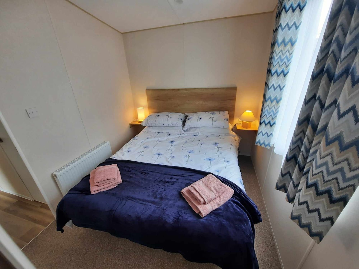 Situated in Middlemuir Heights Holiday park ten minutes from Ayr. It's a tranquil and mostly residential park in the lovely Ayrshire Countryside. There are woodland walks nearby and it is a short drive to the coast. This accommodation is more suited for couples or families wanting a quiet break. The cozy static caravan has a small deck to the side with seating. There is 5G Wifi and a tv in the sitting room. There is a bar and restaurant in the village a ten minute walk away.