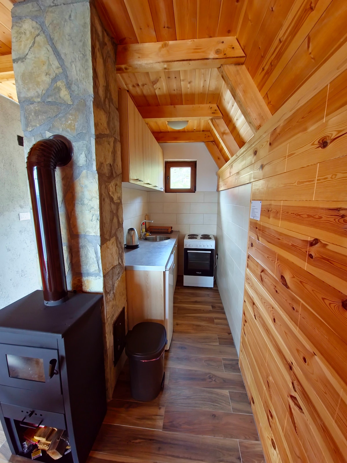 Ten uroczy, stylowo urządzony domek położony jest w otoczeniu dziewiczej przyrody i oferuje niesamowity widok na górę Durmitor i jezioro Riblje. Przód jest w całości wykonany ze szkła, zapewniając niezapomniane panoramiczne wrażenia. Oszałamiające oświetlenie podkreśla jego niezwykły wygląd. Na piętrze znajduje się przytulne francuskie łóżko, idealnie usytuowane, aby obudzić się z zapierającym dech w piersiach widokiem na górę. Ten domek jest idealnym miejscem na pełne cieszenie się naturalnym pięknem i spokojem.