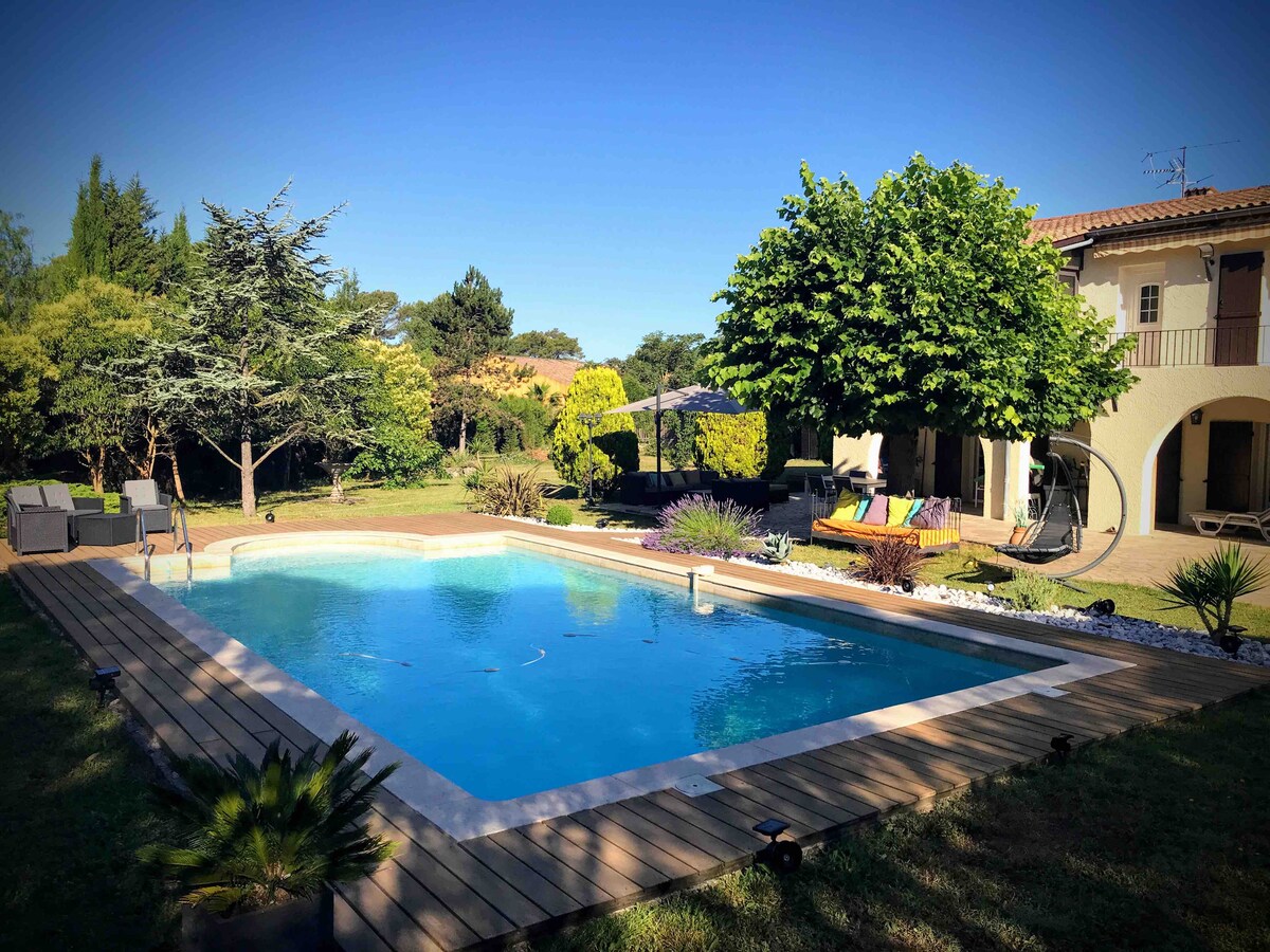 Our Guest House is located in a green setting at the foot of the world-famous Village of Mougins in one of the most beautiful areas of Mougins close to golf courses, tennis... We designed it with passion so that our guests feel the relaxing and luxurious ambiance it provides. It is a place of calm and tranquility where parties and receptions are not allowed....