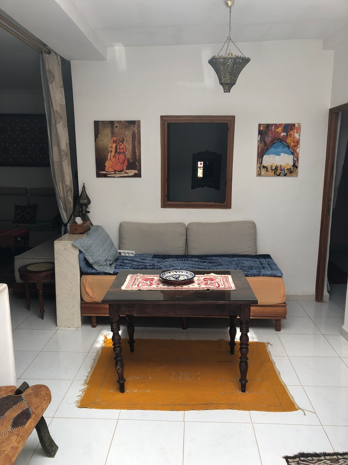 To mieszkanie to typowa marokańska Mesrya. Zostało odnowione w tradycyjnym stylu i posiada w pełni wyposażoną kuchnię, taras na dachu, łazienkę, 2 sypialnie, salon i patio. Znajduje się na 1 piętrze i ma własne wejście. Mieszkanie znajduje się w Batha, w medynie Fes, niedaleko głównej ulicy Tala Sghira. Restauracje, małe sklepy, piekarnia znajdują się w odległości spaceru. Jest to spokojna okolica, znana z bezpieczeństwa. To idealne miejsce, aby zanurzyć się w autentycznym życiu Fes.