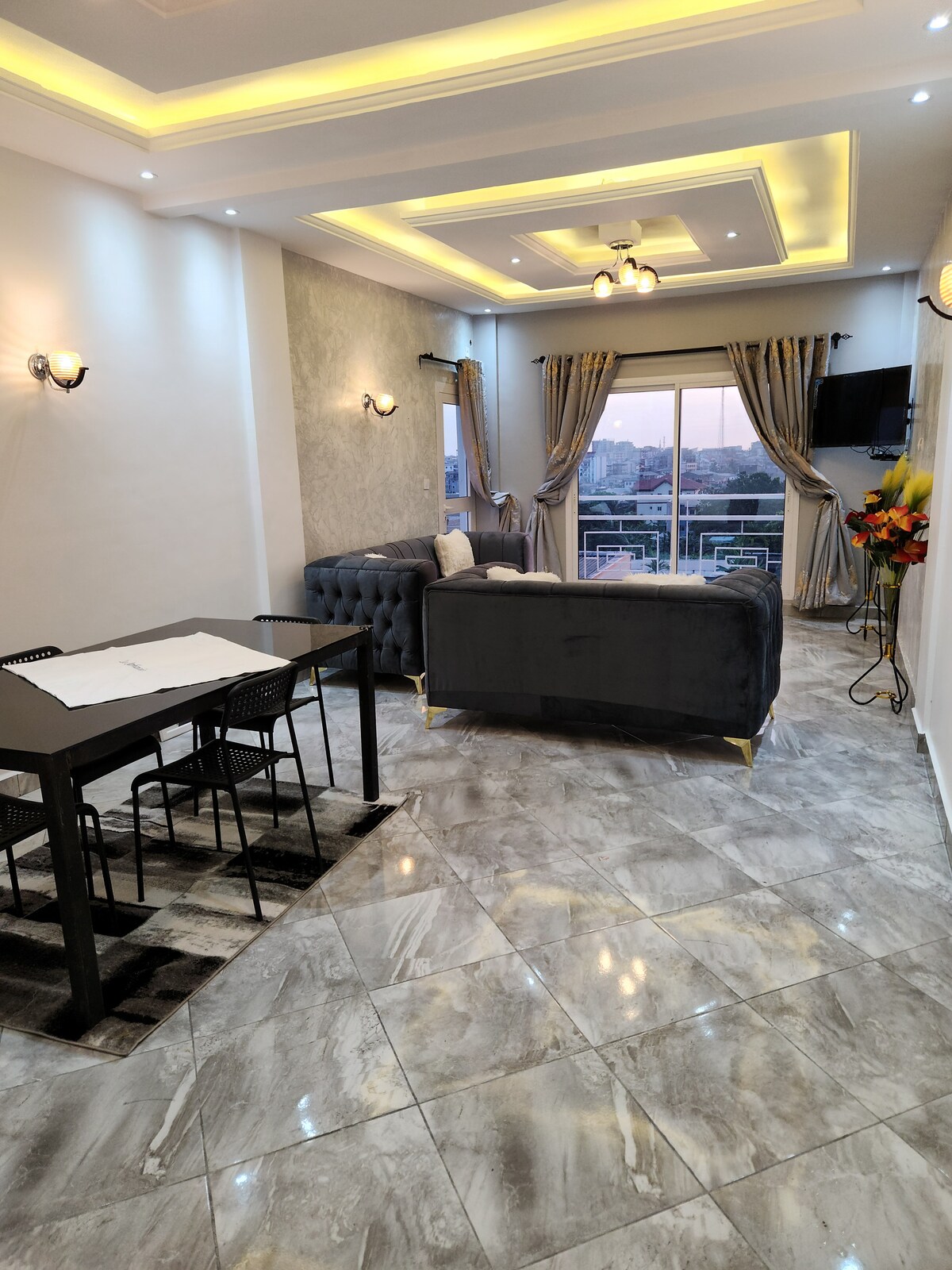 Doha Residency Douala oferuje urocze, nowoczesne mieszkanie z 1 sypialnią i 2 łazienkami z panoramicznym widokiem. Basen tuż obok, w odległości spaceru. Obiekt położony 1 km od Carrefour Market. Wszystkie pokoje wyposażone są w klimatyzację. Możesz oglądać Netflix, YouTube i Canal+). Pełne wyposażenie kuchni. Ręczniki, kapcie hotelowe, szlafrok, szczoteczka do zębów, kawa w cenie /szybki Internet i prąd są już wliczone w cenę. Możesz zarezerwować pobyt długoterminowy do 6 miesięcy z niższymi cenami.