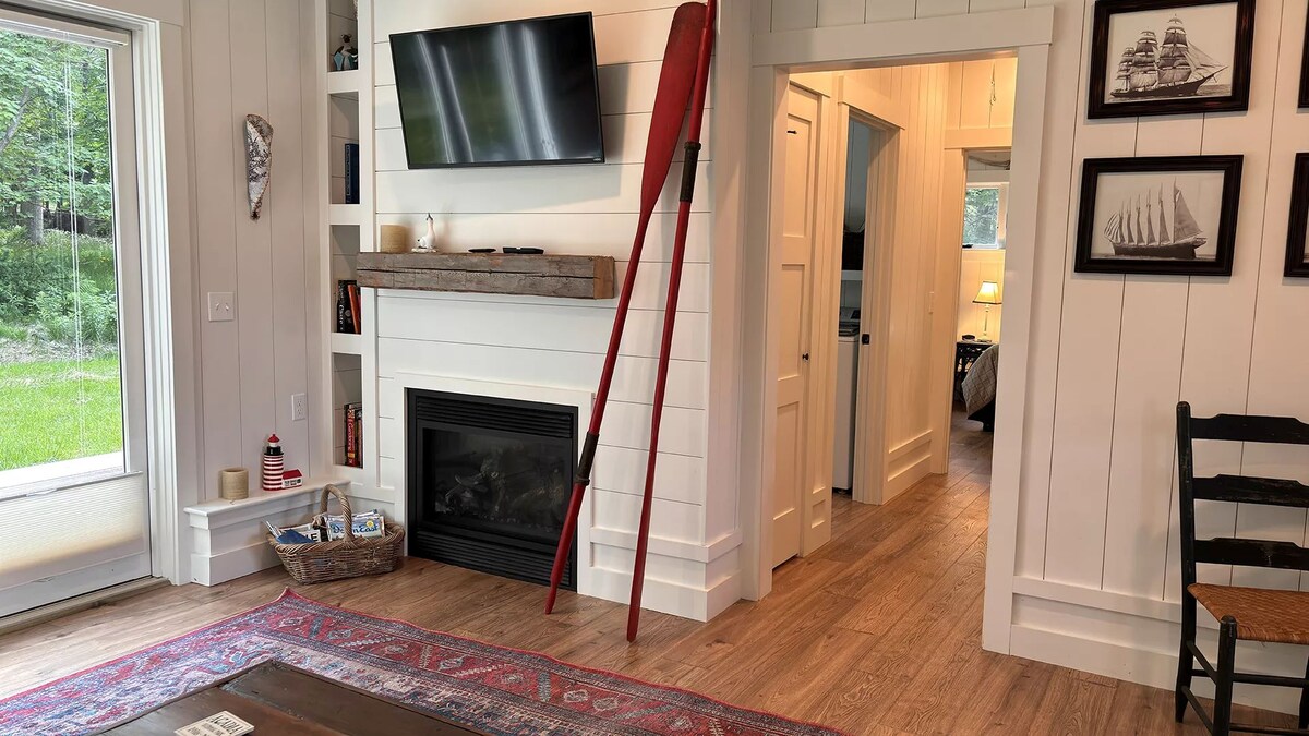 Mały domek gościnny (450 stóp kwadratowych) z widokiem na rzekę Benjamin. Klimatyzacja! Ciesz się filiżanką kawy na prywatnej werandzie. W salonie znajduje się telewizor Smart TV (bez kabla, ale dostępny jest Internet umożliwiający dostęp do konta streaming). Dostępne są również płyty DVD. Aneks kuchenny wyposażony jest w ekspres Keurig z dołączonymi kapsułkami, mini lodówkę, ekspres do kawy/filtry, opiekacz, kuchenkę mikrofalową, 2 palniki (bez piekarnika), naczynia/garnki i patelnie. Jest też loft z łóżkiem wojskowym. Nieodpowiednie dla dzieci poniżej 5 lat.