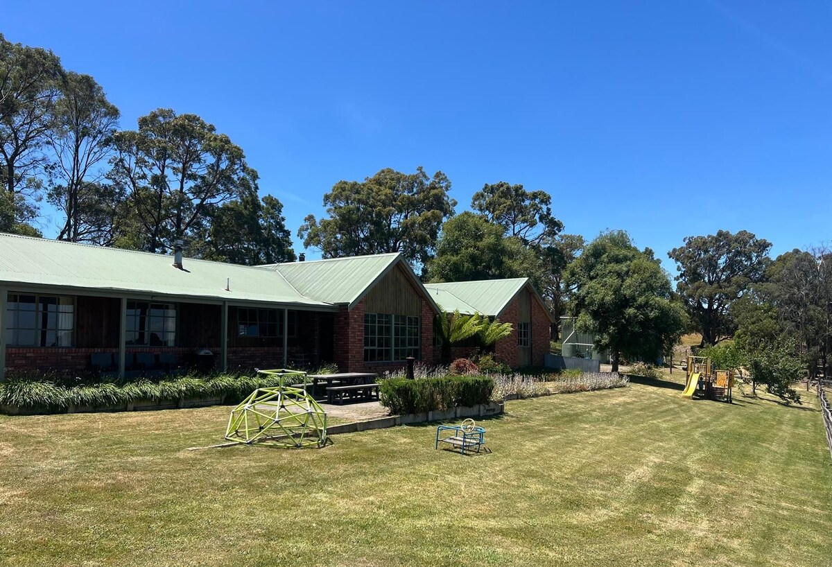 Położona na malowniczych wzgórzach Morrisons, ta 38-akrowa farma jest idealnym miejscem wypoczynku dla rodzin, par i małych grup. Mieści ona do 8 osób dorosłych i łóżeczko dla najmłodszych. Będziesz cieszyć się doskonale wyposażonym gospodarstwem i wspaniałymi widokami na rozległy taras. Owce, konie, kozy, kury i stado gęsi będą Twoimi jedynymi sąsiadami w tej oszałamiającej lokalizacji, zaledwie 7 km od najbliższego miasteczka, 45 minut do Geelong i 30 minut do Ballarat.