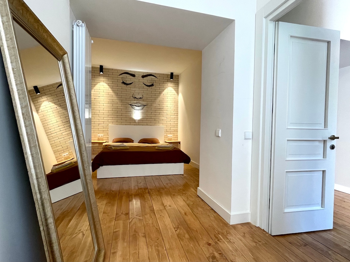 Nowo wyremontowany, wysoki sufit, pełen światła i przestronny apartament w zabytkowym budynku - Hotel de Londres, który został otwarty w 1875 roku. Budynek posiada zapierające dech w piersiach schody i znajduje się w samym sercu miasta, w otoczeniu parków, muzeów, Dry Bridge, Pałacu Prezydenckiego i 10 minut spacerem od Starego Miasta. Szybkie Wi-Fi dla pracowników zdalnych, brak kabla ethernetowego, ale Wi-Fi jest dość szybkie! * nie proś o ofertę poza Airbnb. Szanuj zasady!
