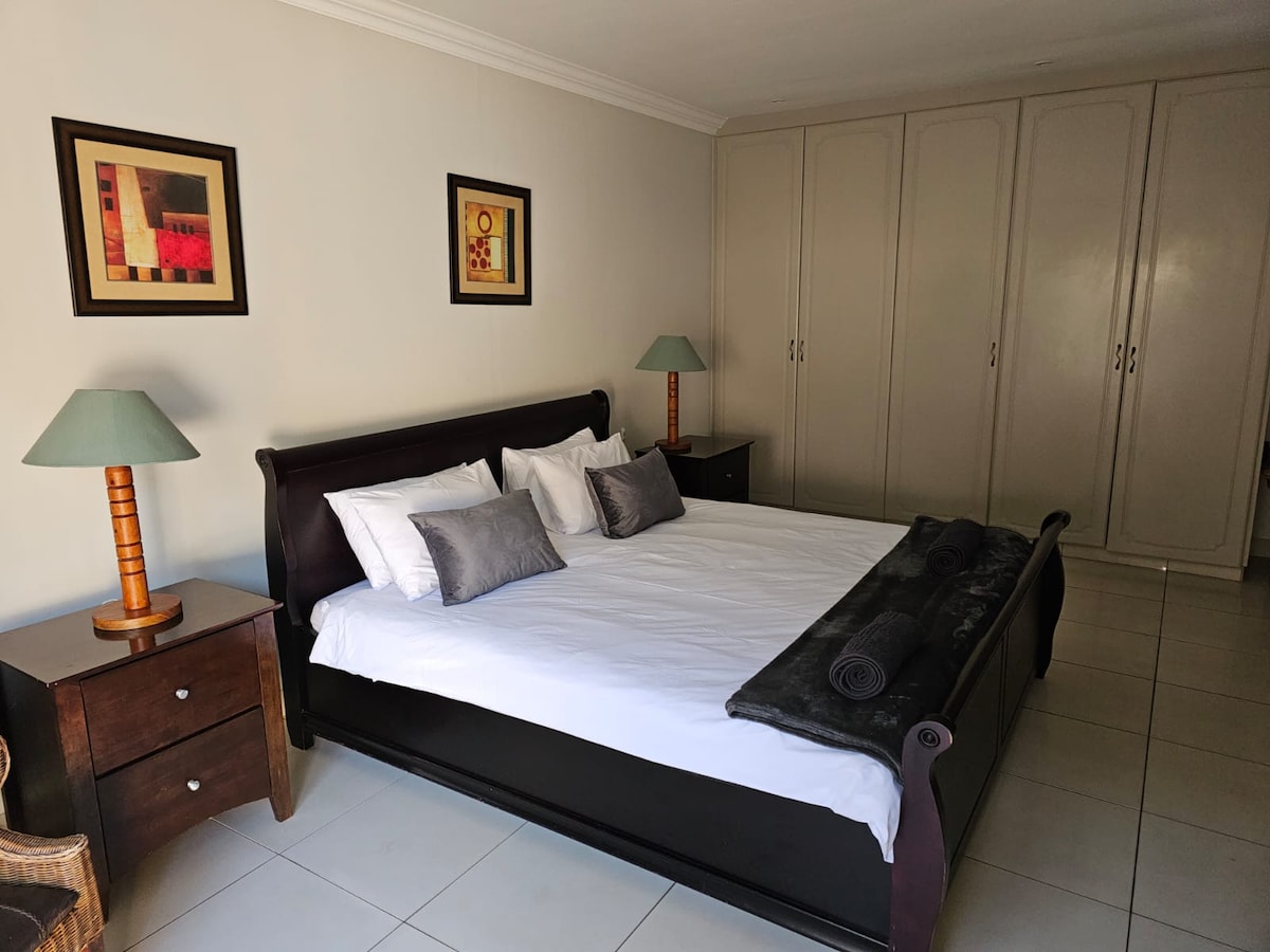 A very modern, neat and upmarket one-bedroom, open plan kitchen/lounge air-conditioned self-catering unit in a safe and friendly residential area. The unit can accommodate 2 adults and 2 kids. Load shedding \ power outage you ask?? Be prepared to experience life without loadshedding. We are practically off the grid. Rest assured; you will definitely feel at home at Kelly's rest!
