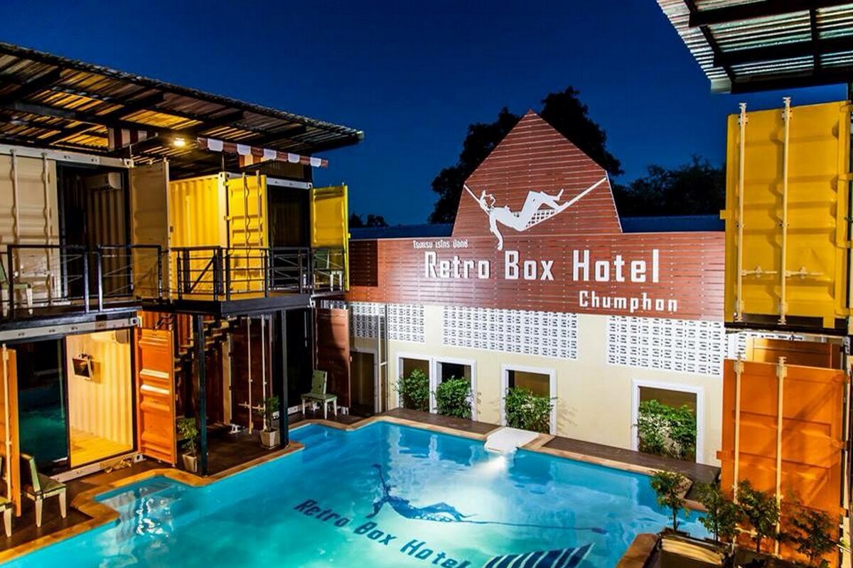 Pokój w stylu retro w kontenerze wysyłkowym, oferujący naturalne materace lateksowe na łóżku typu queen size z klimatyzacją, lodówką, telewizorem LCD z dostępem do kanałów satelitarnych oraz prywatną łazienkę z gorącym prysznicem i bezpłatnymi przyborami toaletowymi. Powierzchnia pokoju to 2,5*6 mkw., widok na basen lub miasto.