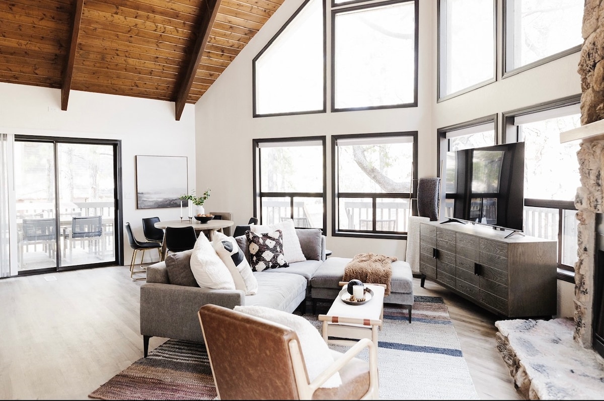 Ta odnowiona luksusowa chata A-Frame z 1972 roku jest położona na spokojnych wzgórzach wioski Kachina. Dzięki 600 metrom kwadratowym powierzchni tarasu jest to idealne miejsce na relaks, odpoczynek i oddychanie rześkim górskim powietrzem. Położony zaledwie 10 minut od Flagstaff, będziesz mieć łatwy dostęp do wszystkiego, czego potrzebujesz, ale jesteś wystarczająco daleko od miasta, aby cieszyć się ciszą i spokojem. Wnętrza i przestrzenie zewnętrzne zostały zaprojektowane tak, aby były ciepłe i przyjazne, dzięki czemu poczujesz się jak w domu i będziesz gotowy, aby się zadomowić i zrelaksować.