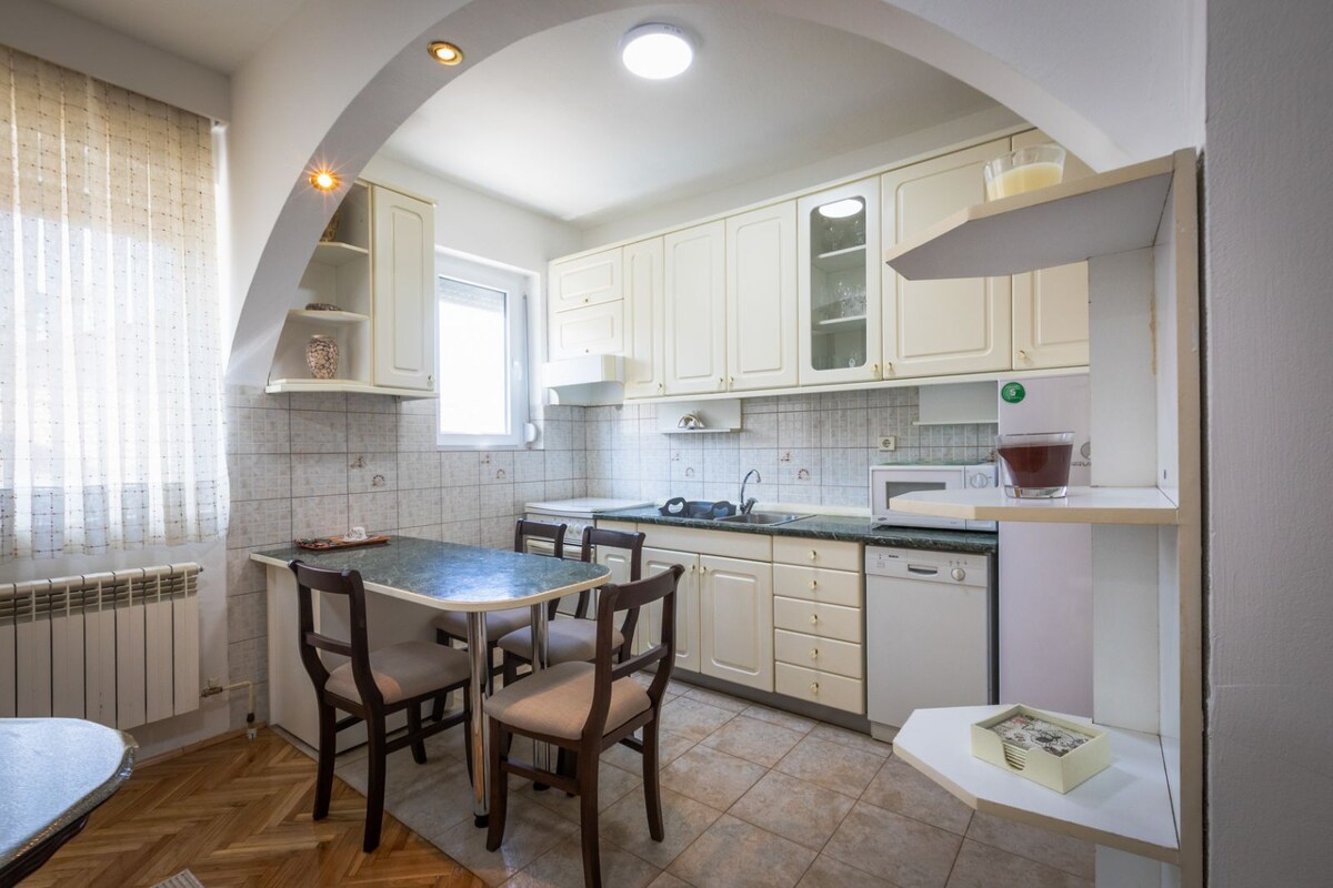 To mieszkanie znajduje się w spokojnej dzielnicy w centrum miasta, zaledwie 80 km od Morza Egejskiego i 2 km od granicy macedońsko-greckiej. Do dyspozycji są 3 sypialnie: 1 z łóżkiem typu queen, 1 z łóżkiem podwójnym i 1 pokój z dwoma łóżkami pojedynczymi. Dodatkowo w salonie znajduje się wygodna sofa dla 2 osób. Znajdziesz tu przestronny i naturalnie jasny salon oraz jadalnię, w pełni wyposażoną kuchnię, łazienkę (ręczniki kąpielowe i suszarkę do włosów w cenie), balkon i bezpłatny parking.