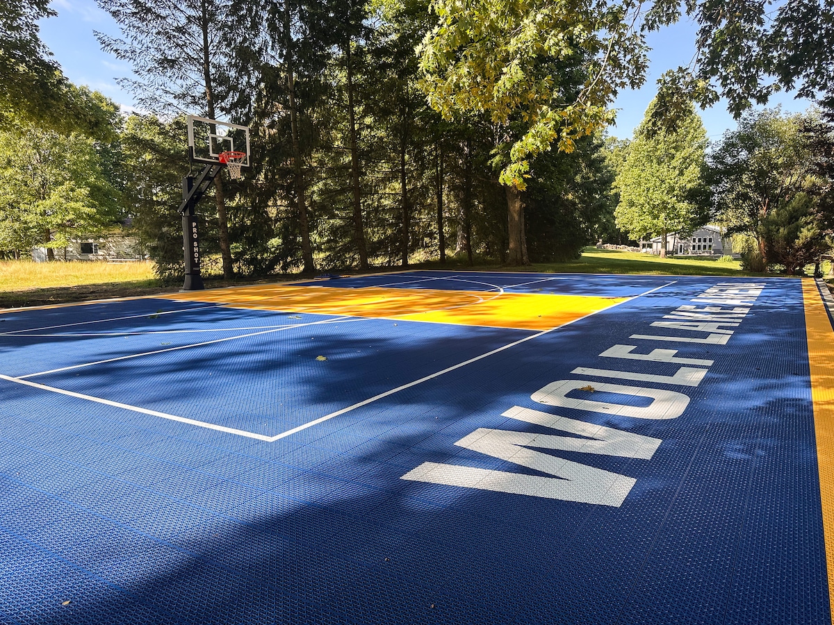 Domek z widokiem na jezioro, pole do pickleballa i koszykówki