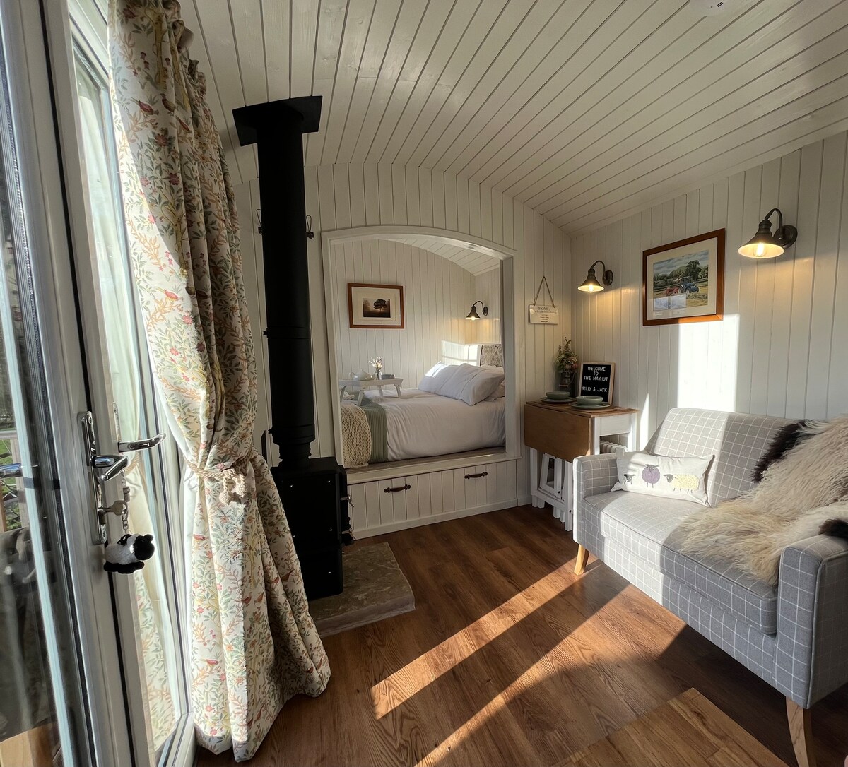 Nasza ręcznie wykonana chata pasterska, ukryta na wsi w Herefordshire, to ustronne miejsce dla par szukających spokoju i prywatności. Wewnątrz znajduje się przytulny piec opalany drewnem, podwójne łóżko, łazienka z prysznicem i przemyślanie wyposażona kuchnia z barem śniadaniowym. Na zewnątrz zrelaksujesz się w prywatnym skandynawskim jacuzzi opalanym drewnem pod gwiazdami. Idealny całoroczny wypad, aby zwolnić tempo, wyłączyć się i odkrywać walijskie granice.