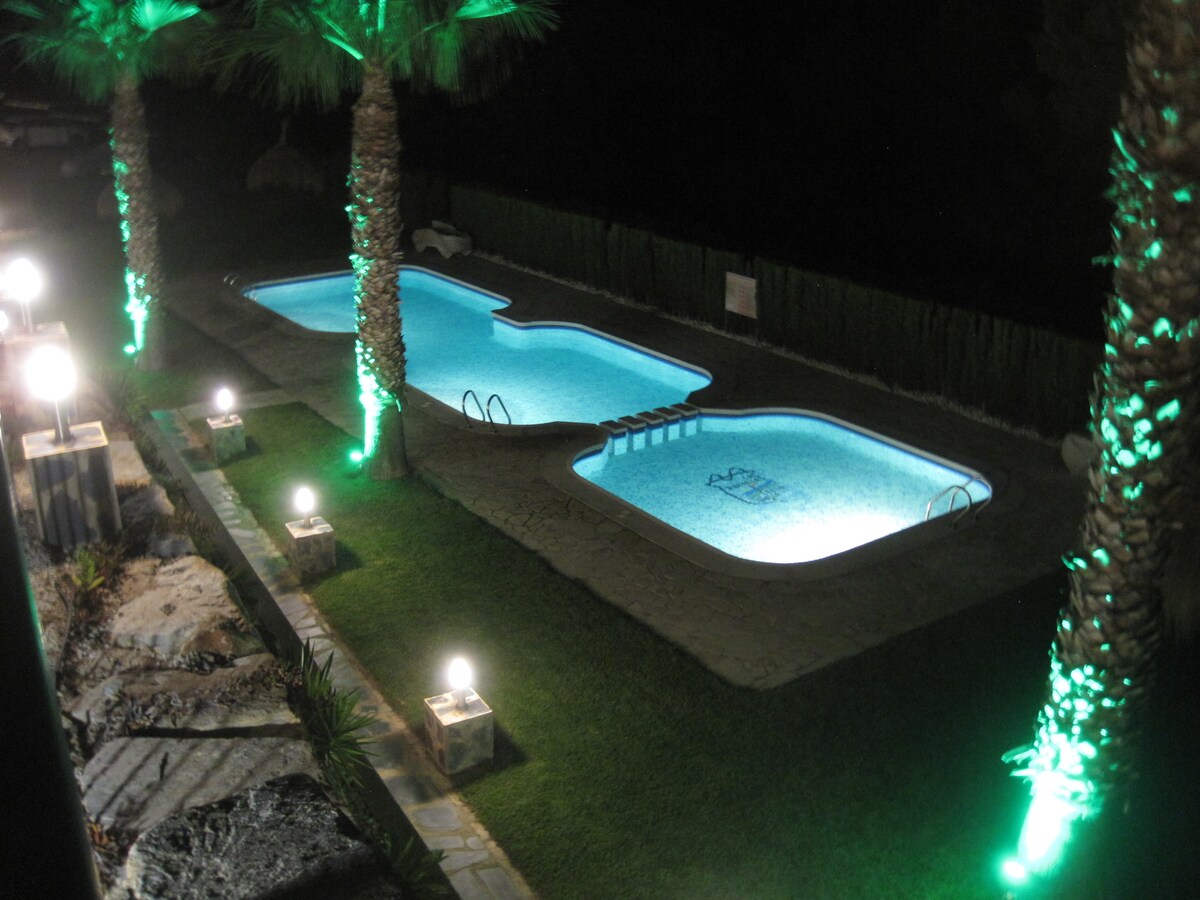 W pełni wyposażony bungalow, położony w pobliżu rezerwatu przyrody Salinas de San Pedro del Pinatar, w odległości kilku kroków od leczniczych błot Lo Pagan. Mniej niż 1 km od naturalnych plaż MORZA ŚRÓDZIEMNEGO i 10 minut spacerem od plaży Lo Pagan nad MORZEM MENOR. Obszar z wszelkimi usługami, restauracjami, supermarketami, cotygodniowym targiem ulicznym, jarmarkiem w miesiącach letnich. Świetna atmosfera nocna. W tym miejscu można oddychać spokojem: zrelaksuj się z całą rodziną!
