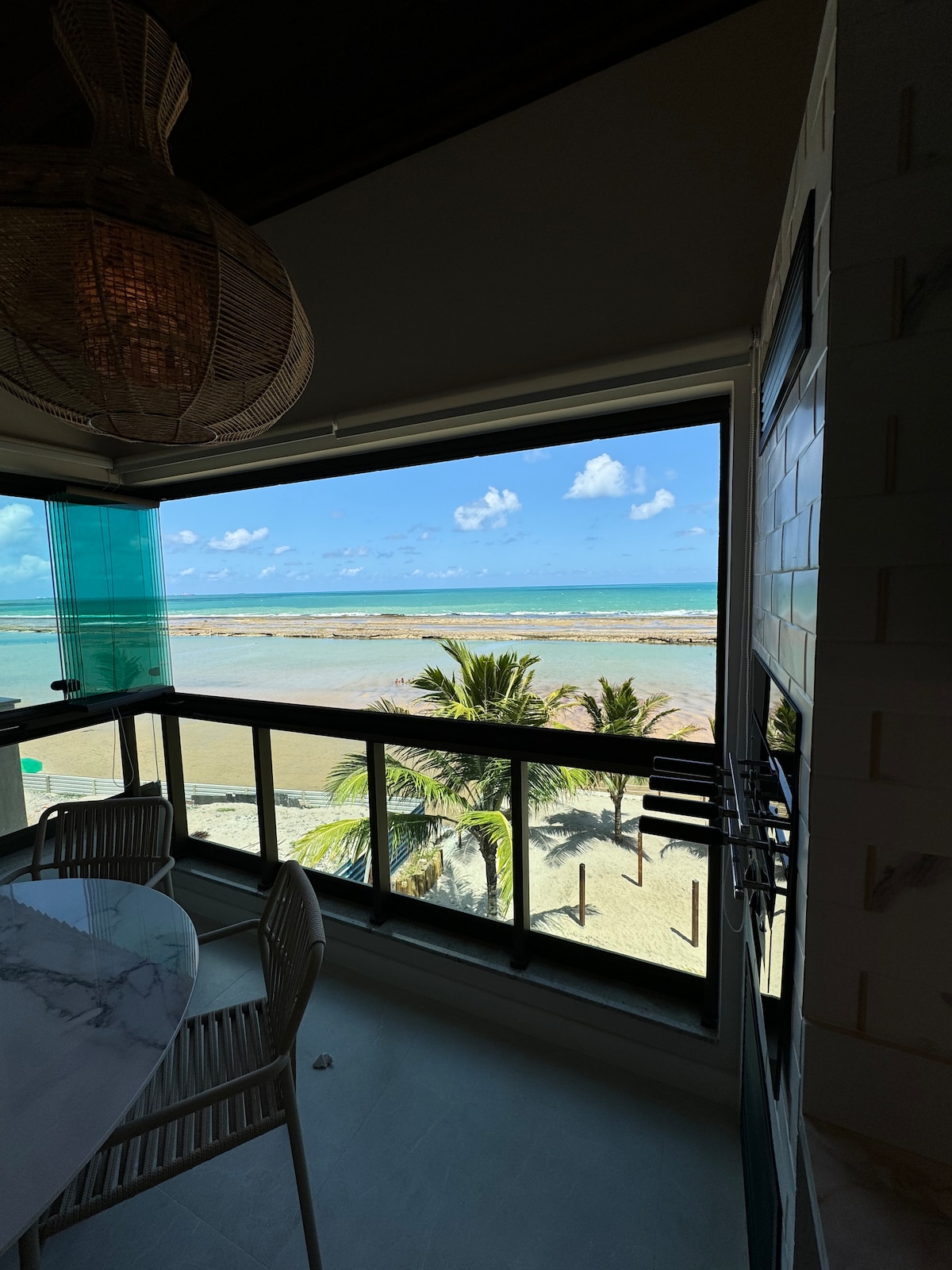✔️Flat no 3°Andar em frente ao mar a 20 passos das areias da Praia e apenas 9 minutinhos caminhando até a Famosa Rua das Sombrinhas, que fica no Centrinho (Vilinha) de Porto de Galinhas. ✔️Varanda privativa com vista para o mar, ar condicionado, smart tv 55", piscina, academia, estacionamento rotativo. ✔️Ideal para até 3 pessoas, casais, roupa de cama e toalhas de banho são fornecidas. ✔️Veja o nascer do sol sem sair da cama, em dias de céu aberto e conforme a estação do ano.