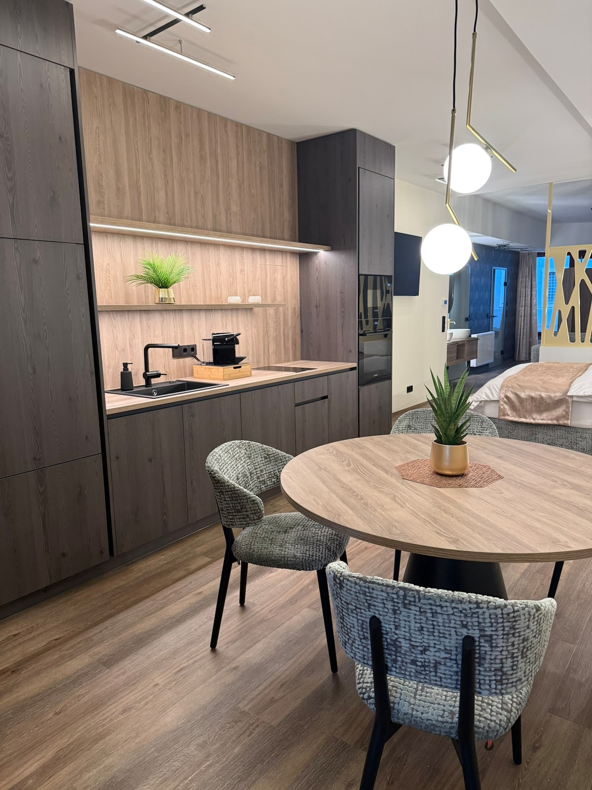 Look forward to a large, comfortable bed, a flat-screen TV, and fast Wi-Fi. An especially large sofa bed in the living room provides additional space for two more guests. The loft features a fully equipped kitchen, a spacious shower, and a double washbasin. A separate toilet completes the amenities. A washing machine and dryer directly in the apartment provide extra convenience. After an active day, the infrared relaxation chair invites you to unwind and recharge.