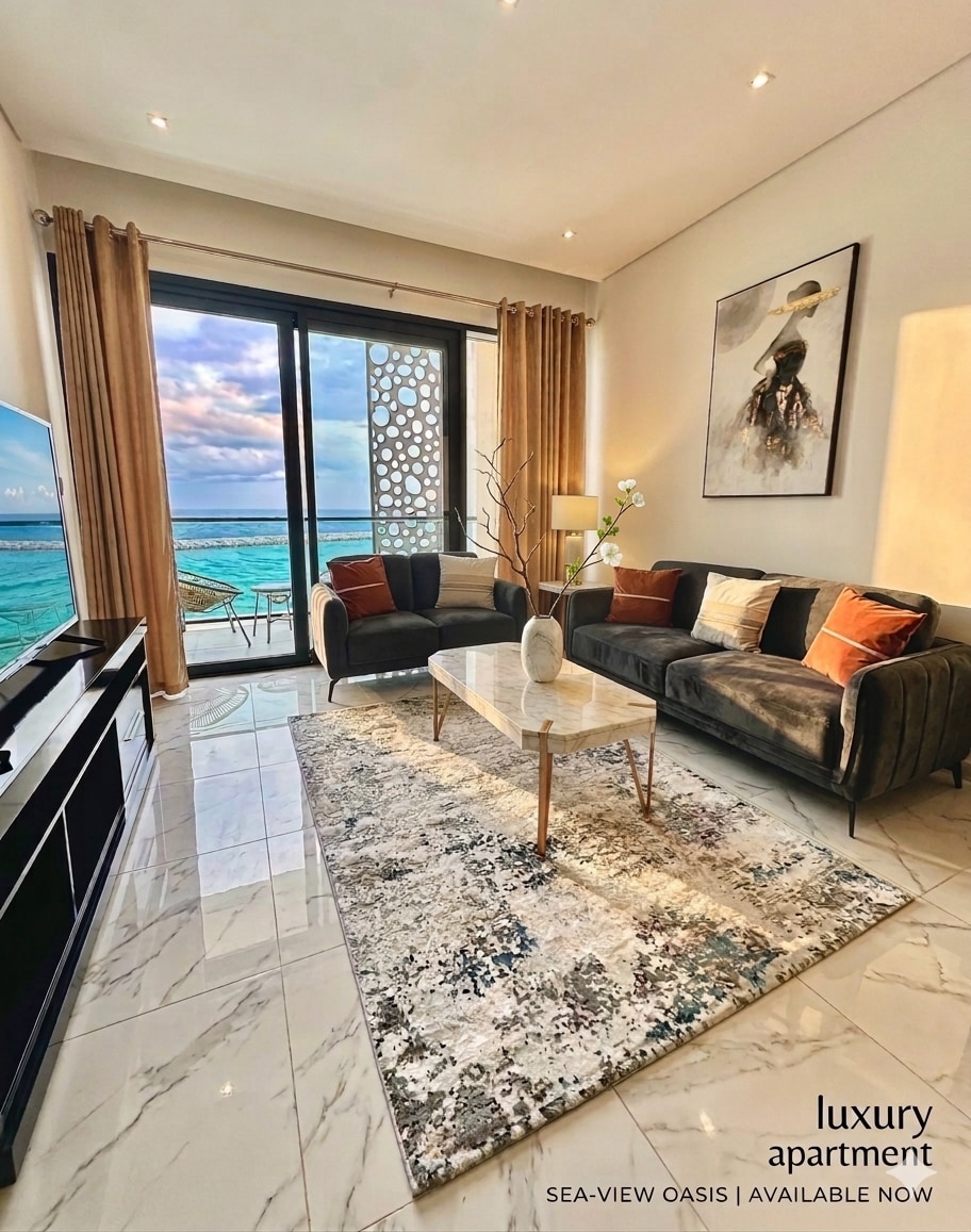 Witaj w swoim luksusowym apartamencie 2BHK z widokiem na przystań i morze. Ciesz się stylowym salonem z pluszowymi sofami i dużymi oknami. Kuchnia i jadalnia są idealne na posiłki z widokiem. Zrelaksuj się w dwóch przytulnych sypialniach i odśwież się w nowoczesnych łazienkach. Wyjdź na przestronny taras – idealny na kawę lub chwile zachodu słońca. Zanurz się w basenie bez krawędzi i ciesz się udogodnieniami premium. Spokojny wypoczynek nad morzem czeka.