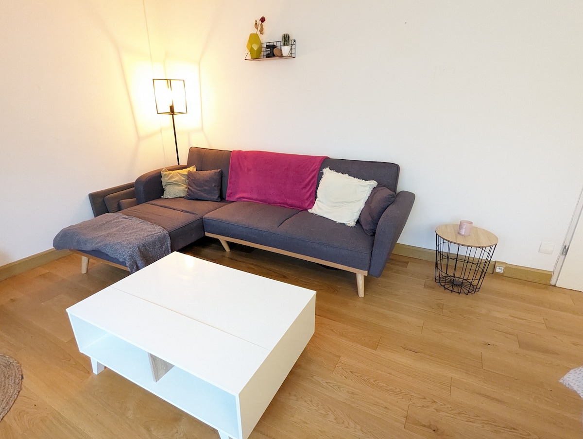 Witaj w Twoim kokonie u wrót Lyonu: Niezależnie od tego, czy przyjeżdżasz na pobyt turystyczny, wyjazd służbowy czy spokojny wypoczynek, to mieszkanie zostało zaprojektowane tak, abyś czuł się jak w domu… a nawet lepiej. Znajduje się w spokojnej i przyjemnej okolicy, gdzie można cieszyć się relaksującą atmosferą, a jednocześnie szybko dotrzeć do centrum Lyonu dzięki pobliskim środkom transportu. WIFI - NETFLIX - TV - MOBILNA KLIMATYZACJA ROWER LOKALNY – SZAFA BABAGE POŚCIEL WLICZONA W CENĘ