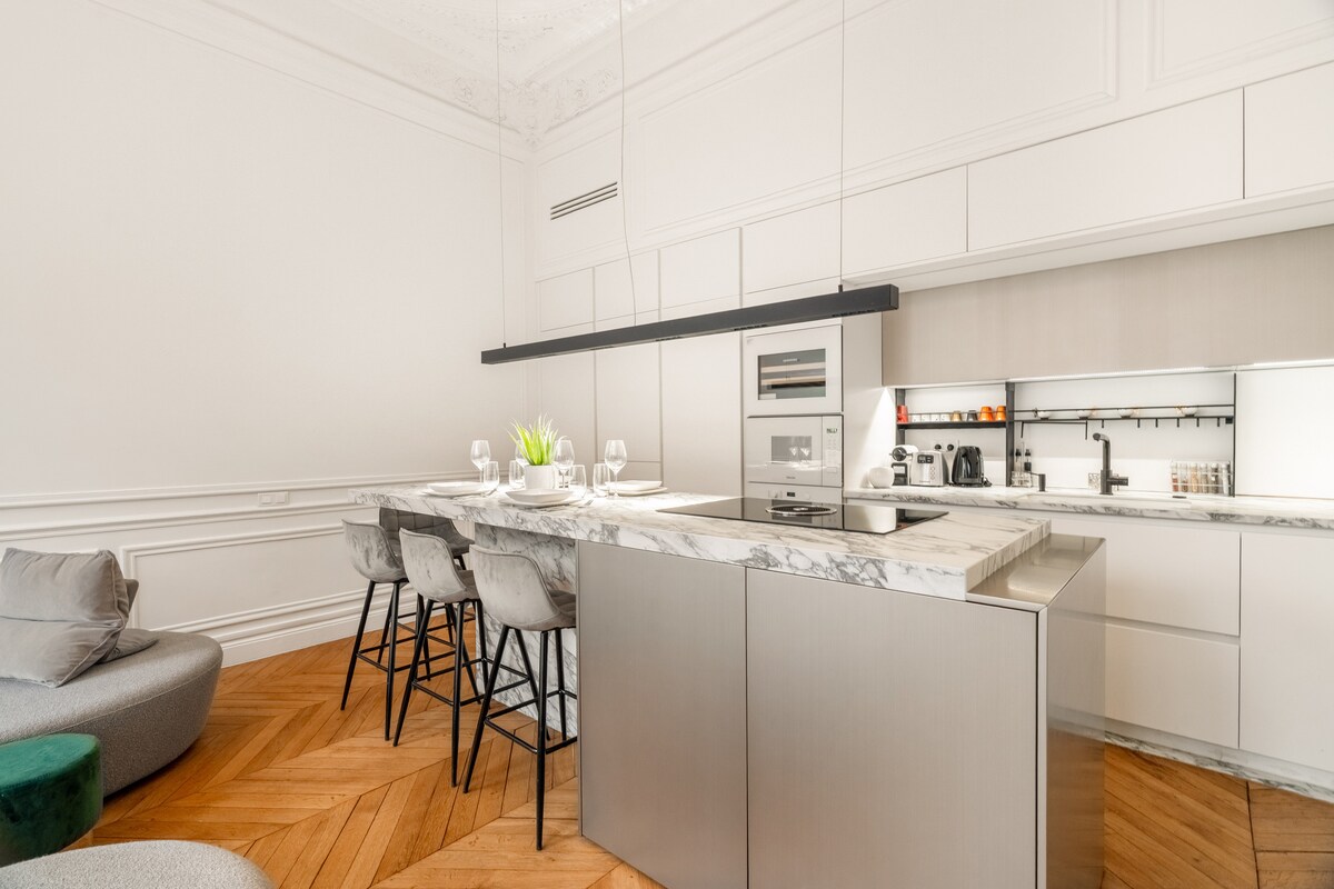 Klimatyzowany apartament o powierzchni 60 m2 o wysokiej klasy wystroju w samym centrum Paryża, w zabytkowej dzielnicy Montorgueil, słynącej z gastronomii, małych bistro i restauracji. Apartament znajduje się na pierwszym piętrze budynku przy bardzo spokojnej ulicy. W 2023 roku został odnowiony przez znanego architekta, dzięki czemu jest bardzo dobrze wyposażony w najwyższej klasy sprzęt. Będziesz się czuć jak w apartamencie hotelowym, a dodatkowo z czarem prawdziwego paryskiego mieszkaniowej.