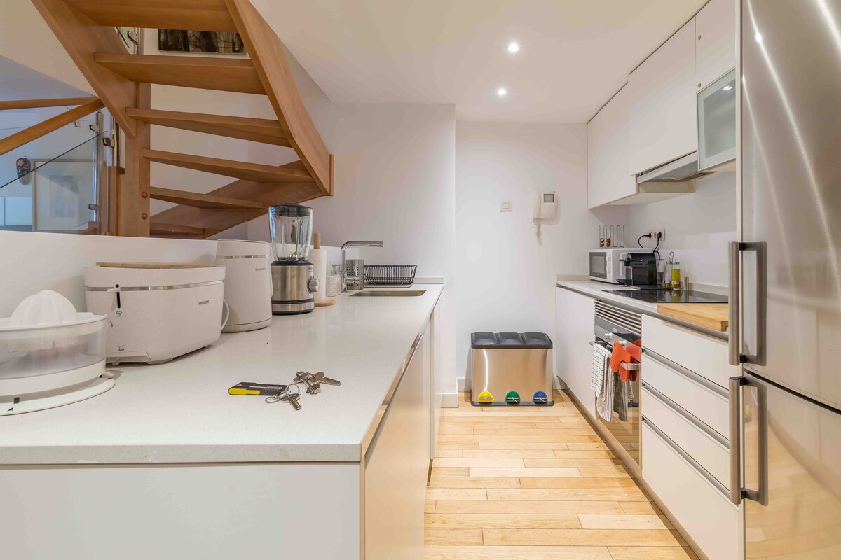 Totally refurbished loft with modern features but with a cosy feeling. The outdoor patio is very rare to find in central Madrid. Spacious layout and very high ceiling. Double glazing, individual gas heating, kitchen fully equipped .Double good mattress bed. Is very quiet. You don’t hear a noise despite being at one of the trendiest area, full of restaurants shops and fashionable bars. Temporary rental for non-tourist purposes. Online registration and contract signing are mandatory.