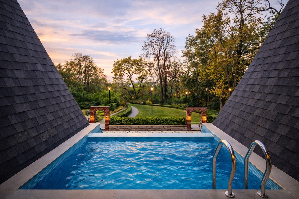 Lush Wild Acres to nasze prywatne sanktuarium projektowania, architektury i gościnności, położone przy słynnej drodze Dehradun–Mussoorie, zaledwie 2 km przed Taj Mussoorie Foothills. Nasze domki w kształcie litery A, powstałe dzięki australijskim inwestycjom i współpracy indyjsko-globalnej, są wyposażone w prywatne baseny bez krawędzi, wanny Jaguar z złotymi elementami w pokojach, kominki wewnętrzne i zewnętrzne oraz w pełni wyposażone prywatne kuchnie. Oferują one poziom prywatności i ekskluzywności, z którym nie mogą się równać nawet luksusowe hotele.