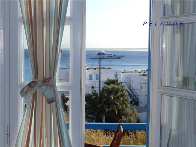 Pension Marias is your classic Cyclades styled hotel. Situated just in front of the sea, views of the Aegean Sea and beautiful Mykonian sunsets. Located 800 meters from Mykonos Town. Rates include transfers to/from airport or port. Please advise us 48 hours prior to arrival your arrival time and flight number or name of vessel. Breakfast is not included, however it can be organized at the extra cost of 8 euro per person per day.