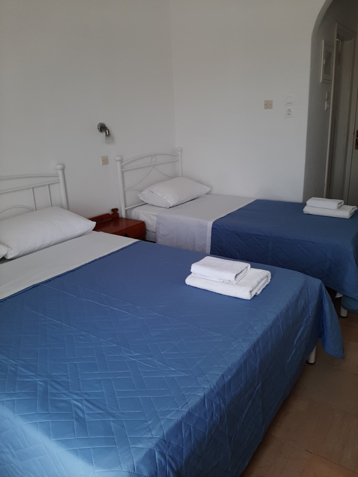 The hotel is located in Platis Yalos, 3,5 km from Mykonos Town and only 50 metres from the nearest sandy beach of Platys Gialos. This is a studio that can accommodate up to 3 adults. The studios have a small kitchenette fully equipped. Also in the room there is A/C, safe box , satellite TV, free WiFi, veranda with view to the sea. There is daily cleanliness of the room, sheets and towels are changed very often. Platis Yalos beach, being one of the oldest and most organised beach in the island.