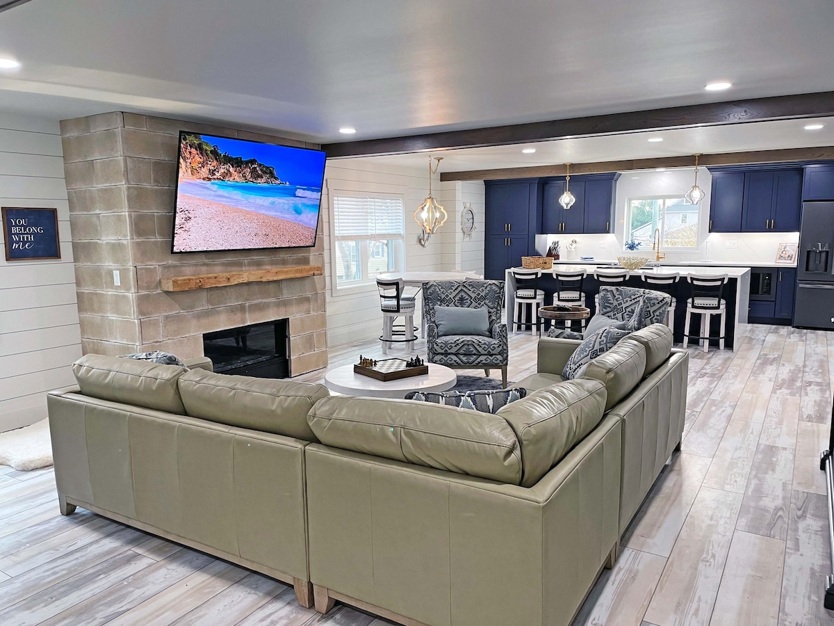Nowy i całkowicie odnowiony nowoczesny dom z 3 sypialniami położony w centrum Mystic (0,4 mili spacerem) kilka kroków od wszystkich lokalnych restauracji i atrakcji. 2 sypialnie mają łóżka typu queen, 1 ma 2 pełne łóżka. Na niższym poziomie znajduje się rozkładana kanapa. Piękna kuchnia z niestandardowymi wykończeniami otwiera się na dużą część dzienną/jadalną. Styl, komfort, centralne ogrzewanie i klimatyzacja, Wi-Fi, telewizja Smart TV, palenisko i pralnia. Ten dom jest idealny na krótki weekend lub miesięczny pobyt. Oferuje dużo miejsc parkingowych.