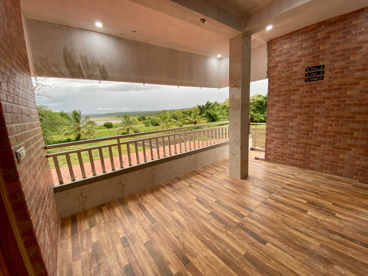 Doświadcz luksusu w naszym domu na dziedzińcu w Kyathanahalli! Z 4 przestronnymi klimatyzowanymi pokojami, łazienkami i ogromnym balkonem z widokiem na dziedziniec, czeka na Ciebie wygoda. Salon, ozdobiony sztuką Ganjifa i zabawkami Channapatna, oferuje wgląd w kulturę Mysore. Ciesz się kinem na świeżym powietrzu przy ognisku w prywatnej przestrzeni na zewnątrz. Otoczona polami trzciny cukrowej i uczęszczana przez pawie, nasze gospodarstwo nad kanałem rzeki Kaveri oferuje spokój.