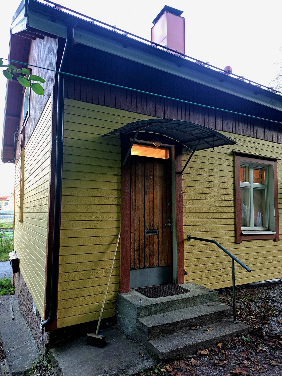 A funky compact one room flat in a wooden house nestled in a quiet & beautiful neighborhood.Features a kitchen, bed is up in a loft, sofa, kitchen table, toilet, wooden sauna and a shower. Underfloor heating throughout the apartment. There is a small yard and terrace where you can enjoy your breakfast outdoors. Travelers have access to entire apartment. Sheet and towels are included. There is only 300m to grocery store and 1.2 km to center.