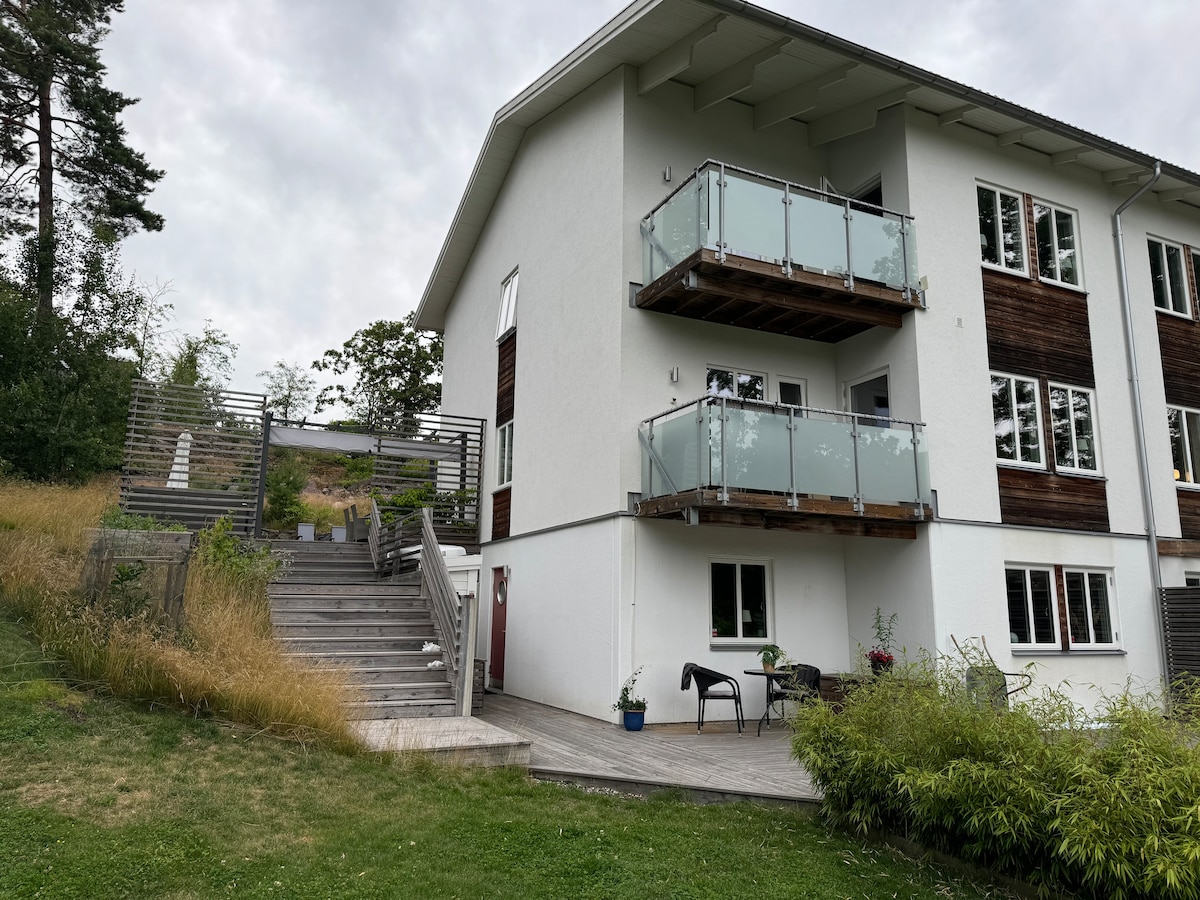 Witamy w naszym własnym, prostym i małym mieszkaniu w malowniczej Kummelnäs. Obszar położony jest w Nacka i jest to spokojna i piękna okolica z rezerwatem przyrody i jeziorami kąpielowymi w pobliżu. Domek ma 18 m² i jest prosto umeblowany większym łóżkiem (140 cm szerokości), dobrze wyposażoną kuchnią, toaletą/prysznicem i prywatnym tarasem. Idealne dla tych, którzy chcą mieszkać w pięknej i spokojnej okolicy, a jednocześnie blisko stolicy i jej pulsu.