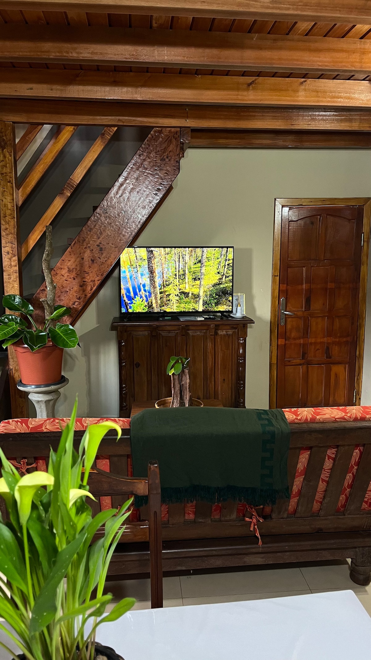 Disfrutá tu estadía en un acogedor dúplex ubicado en un terreno familiar tranquilo, a solo 5 minutos en auto del centro de Puerto Iguazú. Es el lugar ideal para descansar después de un día de aventuras en las Cataratas y otros atractivos de la región. El alojamiento ofrece todo lo necesario para una estadía práctica y confortable, con espacios cómodos, cocina equipada y una habitación familiar con balcón. Habitación amplia con una cama matrimonial y dos camas cuchetas individuales.