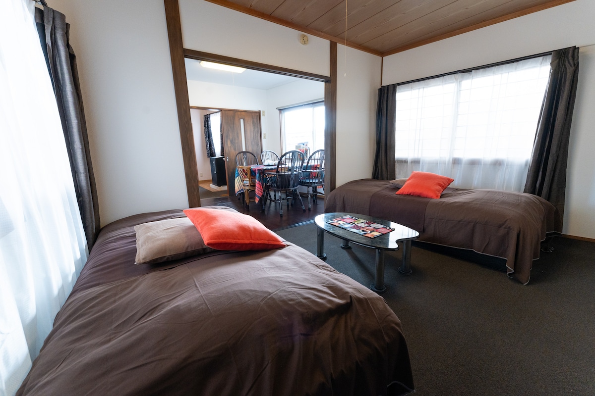 Otworzyliśmy odnowiony dom jako pensjonat w regionie górskim, około 10 minut jazdy od węzła komunikacyjnego Iida. Nie jest luksusowy, ale został odnowiony z myślą o stworzeniu komfortowej przestrzeni. Bezpiecznie nawet zimą.Spędź czas ze znajomymi w ciepłym pokoju. Możesz zatrzymać się w spokojnym miejscu z dala od obszarów mieszkalnych, bez obaw o to, że ktoś będzie na Ciebie patrzył. To ciche miejsce, gdzie można zobaczyć rozgwieżdżone niebo tuż obok tarasu widokowego, sąsiedniego kempingu nad jeziorem lub ogrodu, do którego można dojść w nocy. (* W sezonie śnieżnym nie można wchodzić na taras widokowy) W domu możesz również korzystać z kina domowego z projektorem, który jest łatwy w obsłudze dzięki Wi-Fi.W pobliżu nie ma prywatnych domów, więc możesz cieszyć się głośną muzyką o każdej porze. W czasie pobytu możesz korzystać z 84 m² zajmowanej powierzchni. Możesz korzystać z pralki i suszarki za darmo, więc jest to zalecane w przypadku pobytów długoterminowych. Mamy udogodnienia, które pozwalają gotować własne posiłki, dzięki czemu możesz cieszyć się pobytem, który pasuje do Twoich planów podróży. W okresie zimowym (od stycznia do połowy marca) na drogach w pobliżu obiektu może utrzymywać się śnieg i lód.Jeśli przyjedziesz, przyjedź samochodem z oponami bezkolcowymi i, jeśli to możliwe, z napędem na cztery koła.