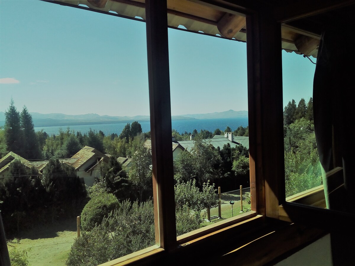 Obiekt jest otoczony piękną przyrodą, 5 minut od centrum Bariloche. Jest nowoczesny, wygodny, ciepły i jasny, a do tego można z niego podziwiać piękny widok na Cerro Otto. Jest wyposażony dla 2/3 osób, ze wszystkimi usługami, Wi-Fi, telewizją, kablówką, dwuosobowym łóżkiem, pościelą, ręcznikami itp. Posiada grill, otwarty parking, patio, hamak i zestaw ogrodowy z widokiem na jezioro. W pobliżu znajdują się również środki transportu i różnorodne sklepy.