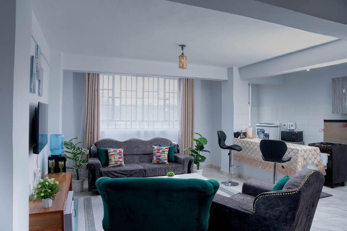 Zrelaksuj się w tym stylowym i spokojnym apartamencie, idealnym na wakacje lub do pracy. To przytulne miejsce wypoczynku, dogodnie położone zaledwie kilka minut od jeziora Naivasha, oferuje idealne połączenie komfortu i wygody. Korzystaj z udogodnień, takich jak w pełni wyposażona kuchnia, szybkie Wi-Fi, telewizor Smart TV z usługami przesyłania strumieniowego, gorący prysznic, bezpłatny bezpieczny parking i całodobowa ochrona. Niezależnie od tego, czy odkrywasz okoliczne atrakcje, czy relaksujesz się po pracowitym dniu, poczujesz się jak w domu. Już dziś zarezerwuj pobyt!