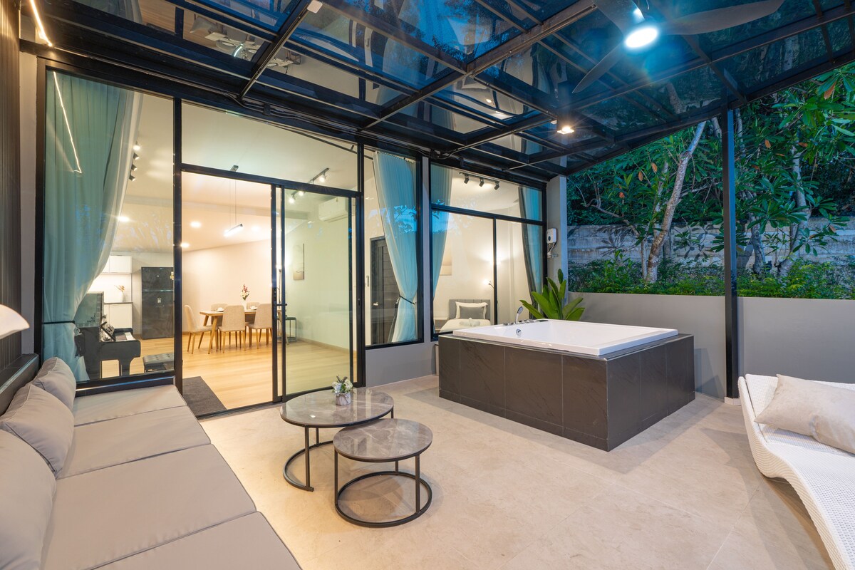 Witajcie w naszym spokojnym domu z 3 sypialniami na Phuket 🏡 – idealnym dla rodzin i małych grup, zaledwie 10 minut od Międzynarodowego Portu Lotniczego Phuket. 🌿 Ucieknij od hałasu – zrelaksuj się w jacuzzi, odpocznij w fotelu do masażu, zagraj na pianinie lub gotuj w w pełni wyposażonej kuchni ✨ Jasny salon-jadalnia na otwartym planie, 3 sypialnie i 2 łazienki dla maksymalnie 6 osób – idealne miejsce na wakacje, spędzanie czasu lub pracę w bezpiecznej społeczności. Prywatny taras z jacuzzi, bezpłatne Wi-Fi i jedno miejsce parkingowe na miejscu 🚗.